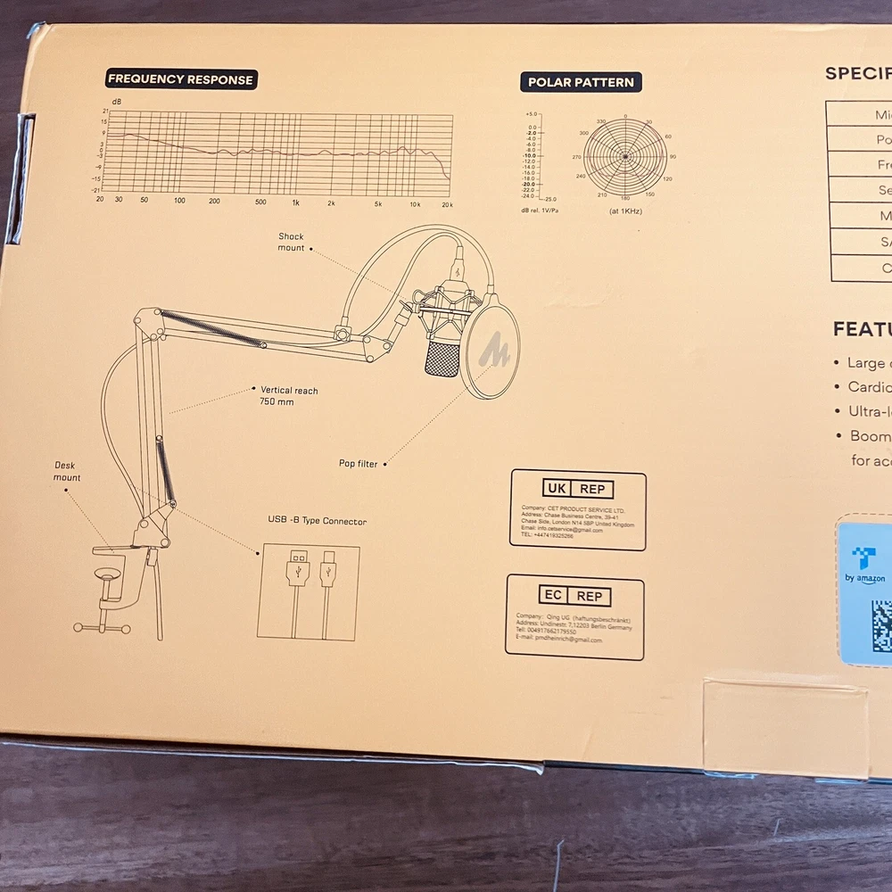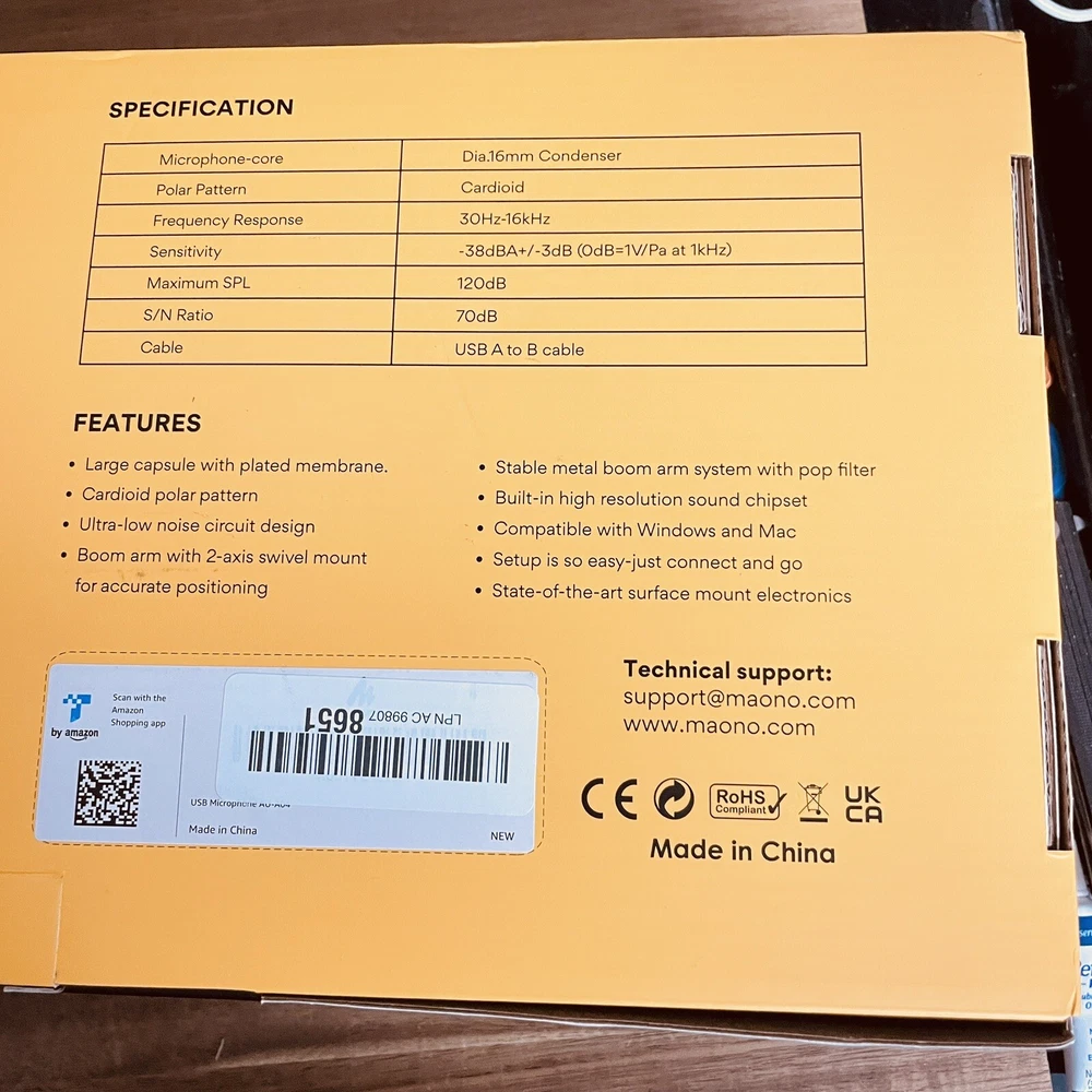 Form Factor:Condenser MicrophoneSuitable For:Music Home RecordingModel:AU-A04 AU-MH601Connectivity:Wired USB USB-CUPC:0667016188537Polar Pattern:Cardioidgtin13:0667016188537Diaphragm Size:A04MPN:MNOAUA04Brand:MAONOFeatures:Plug and Play