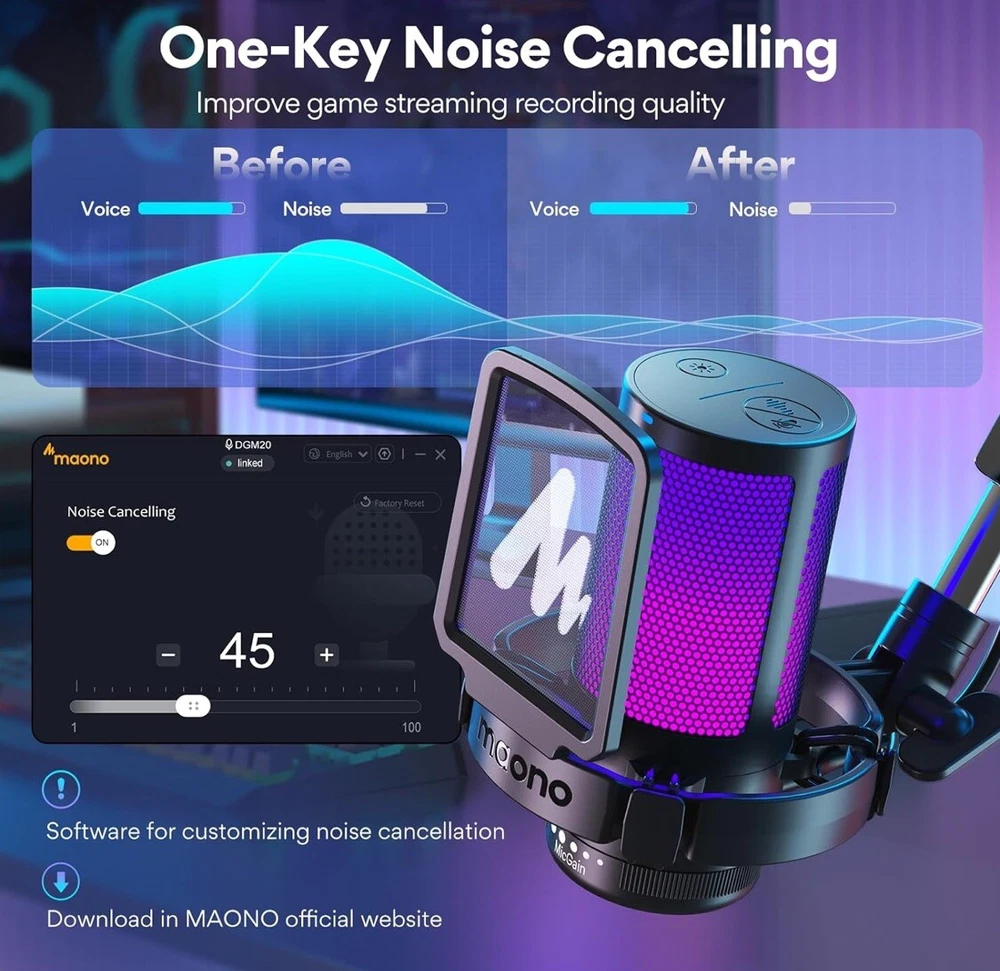 MAONO Gaming USB Microphone, Noise Cancellation Condenser mic with Mute, Gain