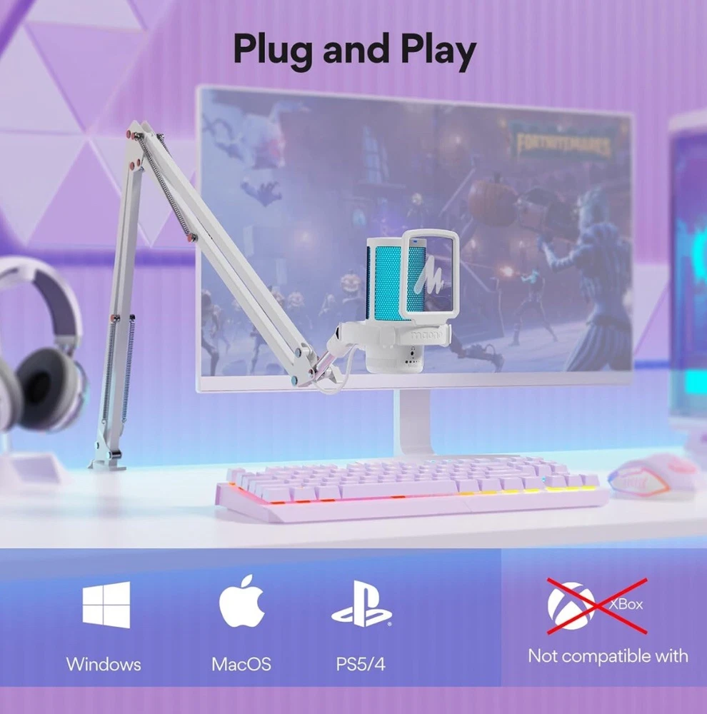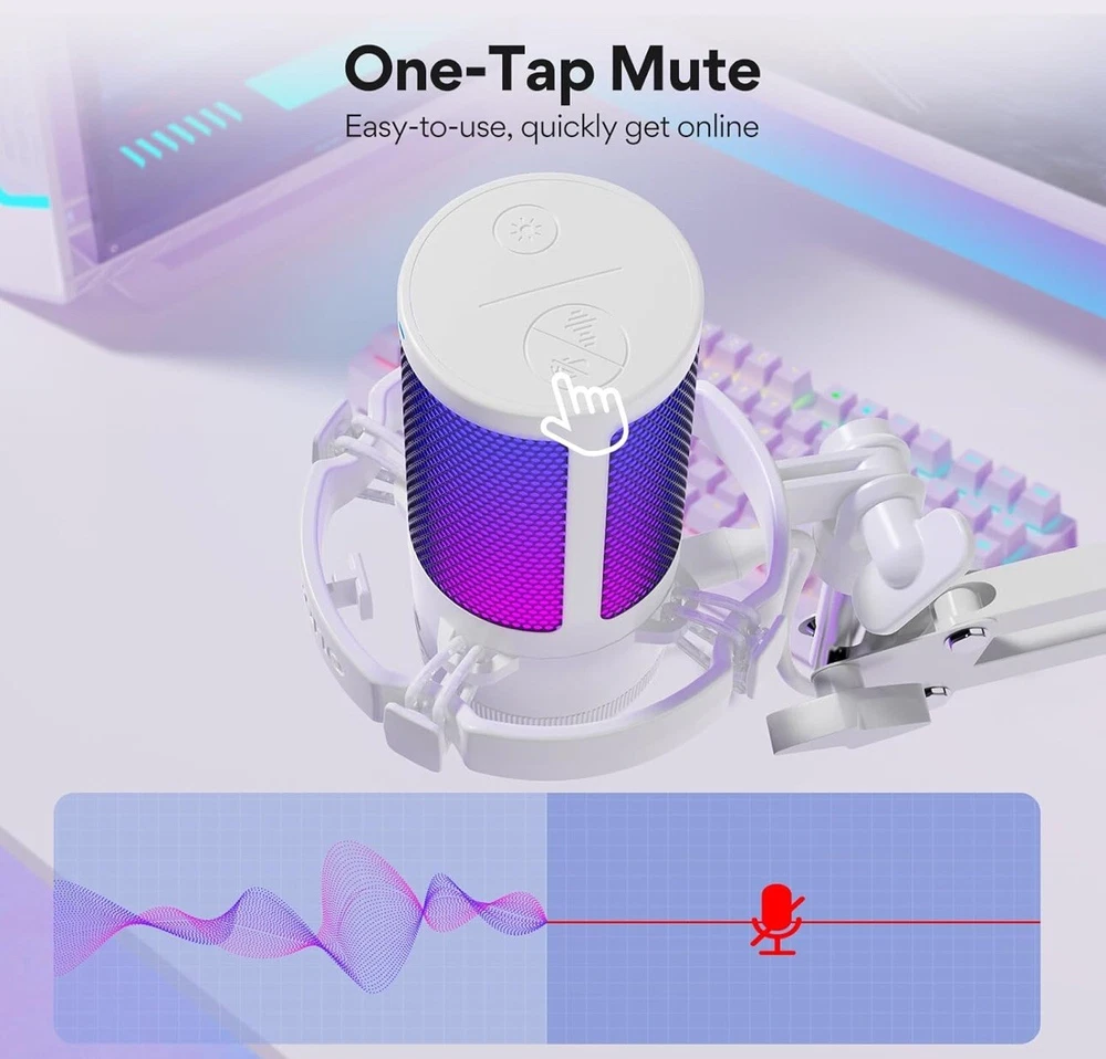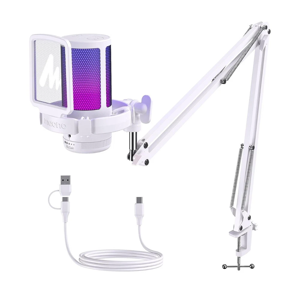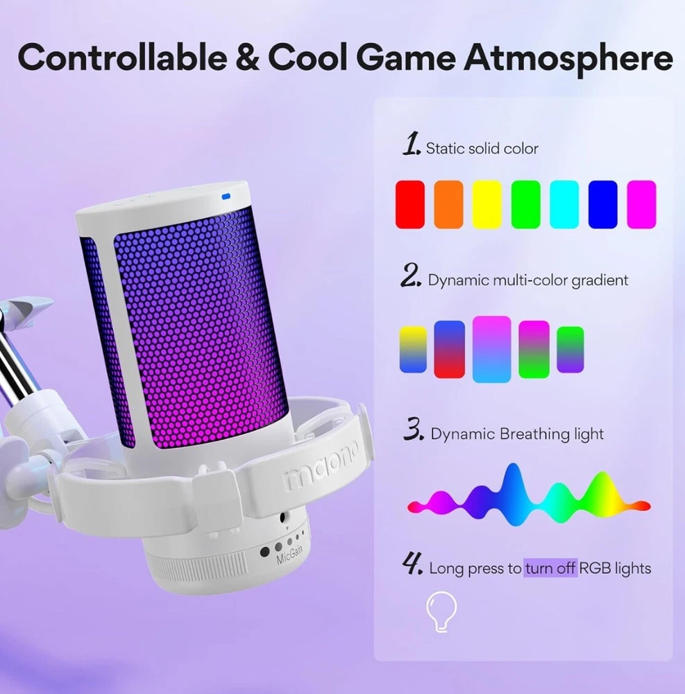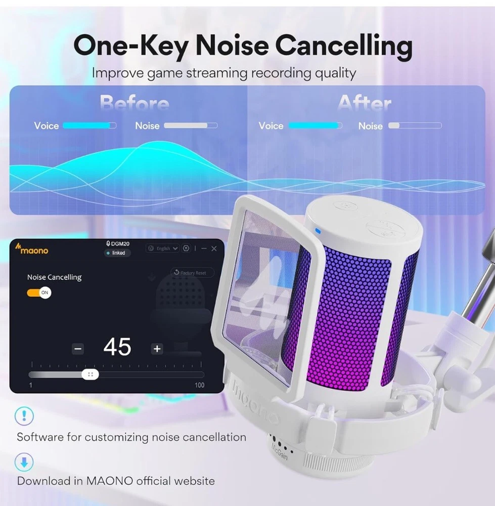 MAONO Gaming USB Microphone, Noise Cancellation Condenser mic with Mute, Gain
