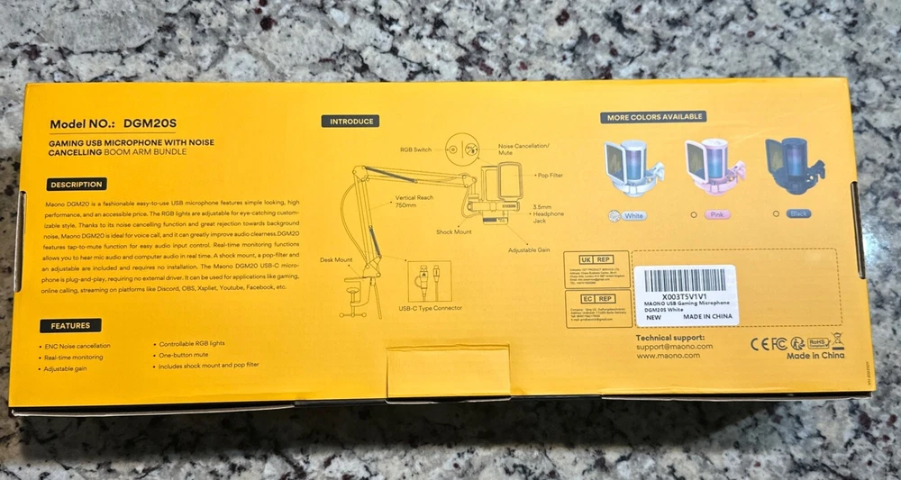 Color: White FormFactor: Channel Strip gtin13: Does not apply UPC: Does not apply Form Factor: Handheld/Stand-Held Connectivity: USB Features: Noise Cancellation Transducer Type: Condenser Brand: MAONO