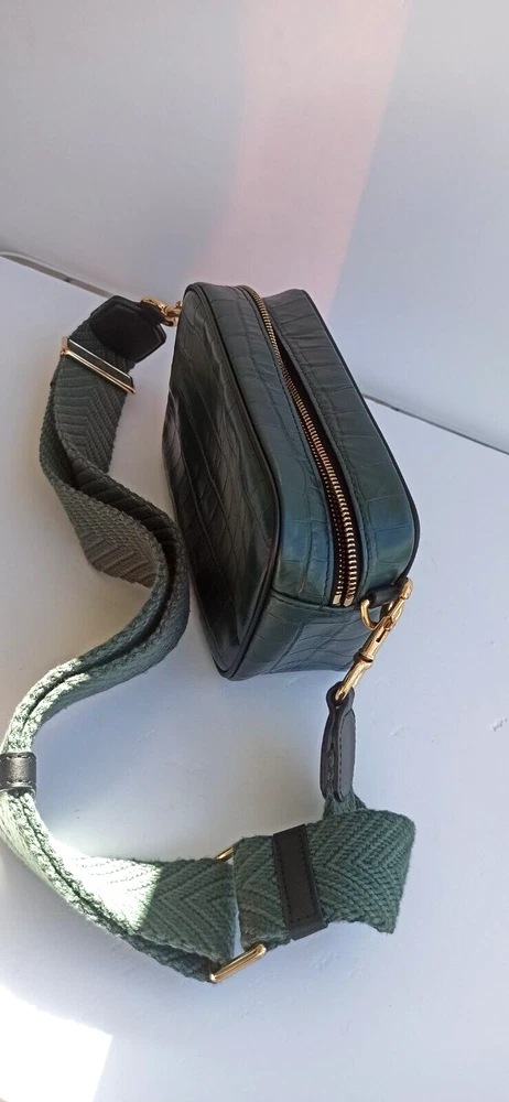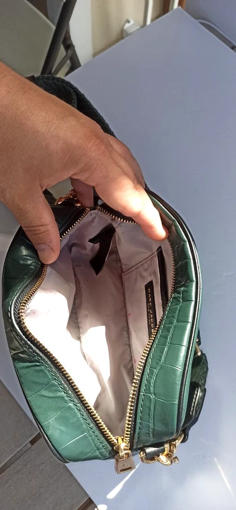 This stylish Marc Jacobs crossbody bag is perfect for any fashion-forward woman. Crafted from high-quality leather, this bag comes in a beautiful green color that will complement any outfit. The small size makes it perfect for carrying just your essentials, while the crossbody strap ensures you can carry it comfortably all day long. The brand name speaks for itself, and this bag is no exception. With its unique style and durable material, it's sure to be a staple in your wardrobe for years to come. Whether you're running errands or heading out for a night on the town, this Marc Jacobs bag is the perfect accessory to complete any outfit.