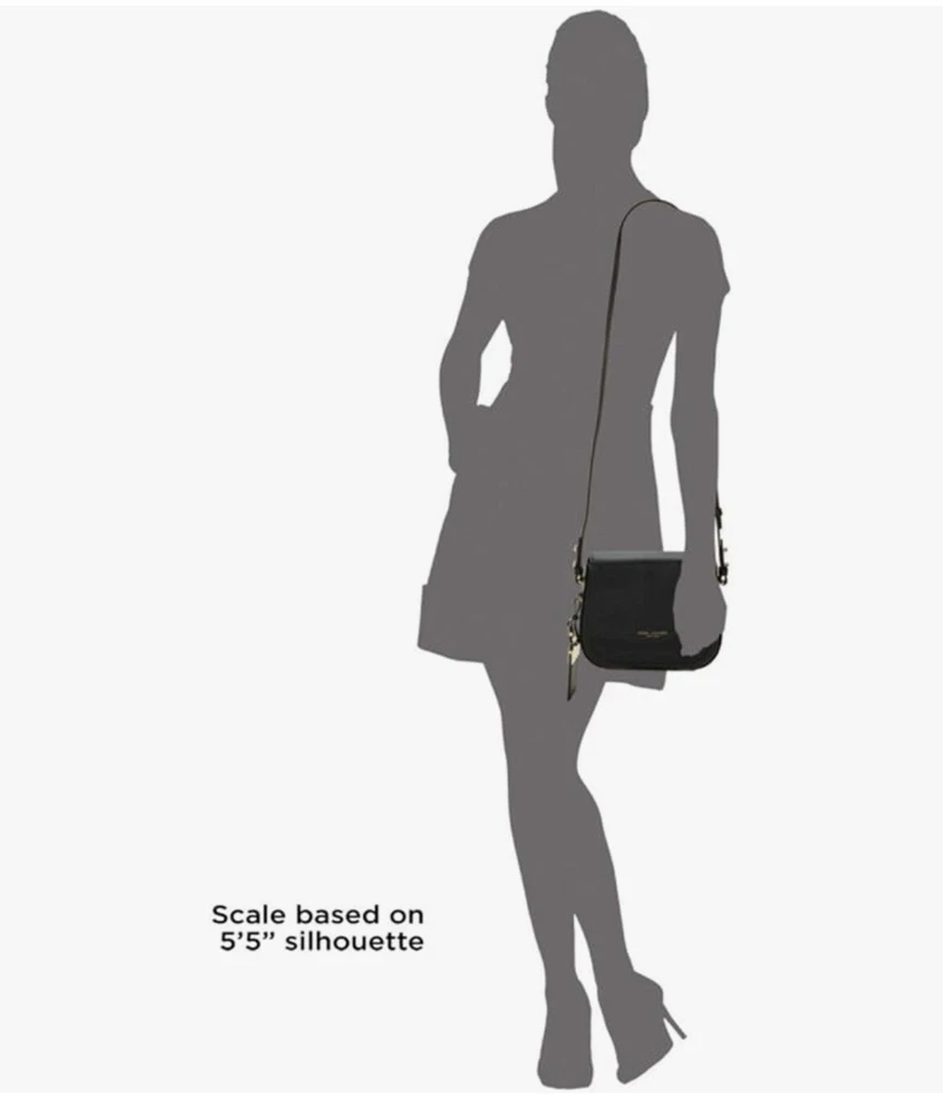 Fold over magnetic snap closure Leather Gold-tone hardware One inside zip pocket Two inside slip pockets Lined Leather/polyurethane coating Crossbody strap, 19"-27" drop 9.5"W x 8"H x 2.25"D