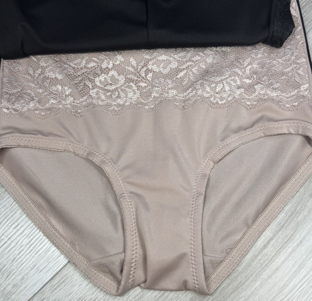 MARILYN MONROE Women’s 3 Pack LACE DOUBLE LAYER FIRM SHAPER BRIEF Beige Black M