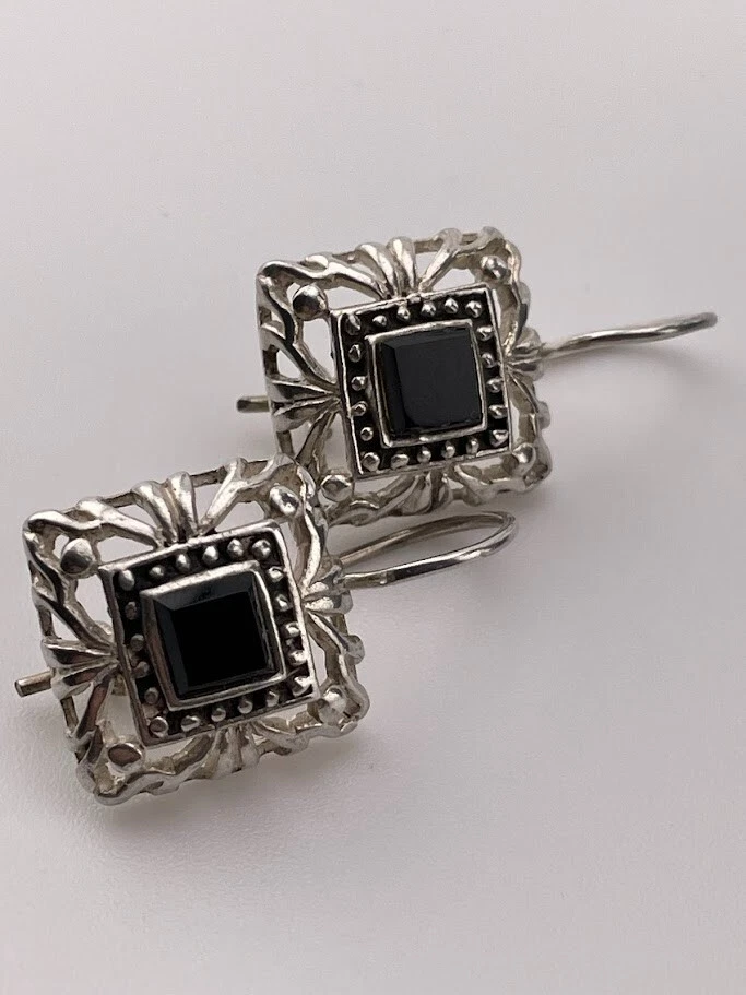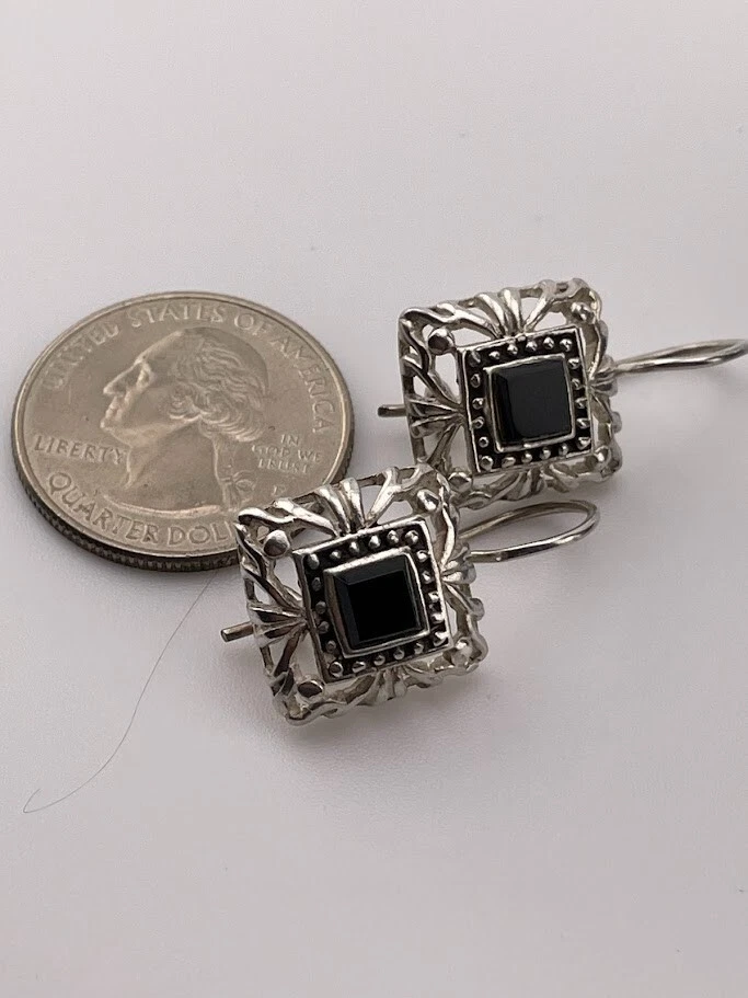 MARSALA 925 STERLING SILVER BLACK ONYX DROP EARRINGS 1" BALI STYLE SOUTHWEST 216 ****************************** Thank you for your interest in our jewelry. We?d like to introduce ourselves. We are just a retired couple who love matching our customers with great jewelry. We?re not professional jewelers. To have the best shopping experience we like to recommend the following: Please measure your hand, wrist, finger or neck to ensure the best fit. We can use your measurements to help with sizing. Please ask all the questions you want. We know some stuff and, if we don?t, we?ll do the research. We like to learn too. More Stuff: If an item is described as ?gold over 925 sterling silver? this means it is gold vermeil. Vermeil is the process by which a layer of gold (usually 14k or 18k) is bonded to sterling silver. We only clean with gentle soap and warm water to avoid damage. The items we sell may be new or pre-owned and may have normal wear, slight damage, and/or tarnish. We make every effort to ensure the items we sell are as described. This includes testing to confirm metal purity if the item isn?t marked, and testing for gemstone identity. We try to put measurements in the jewelry description and include a photo of each piece with a U.S. quarter (25mm).