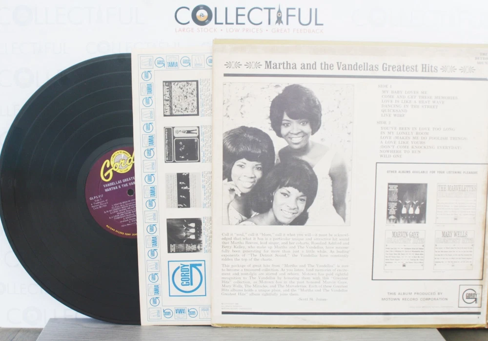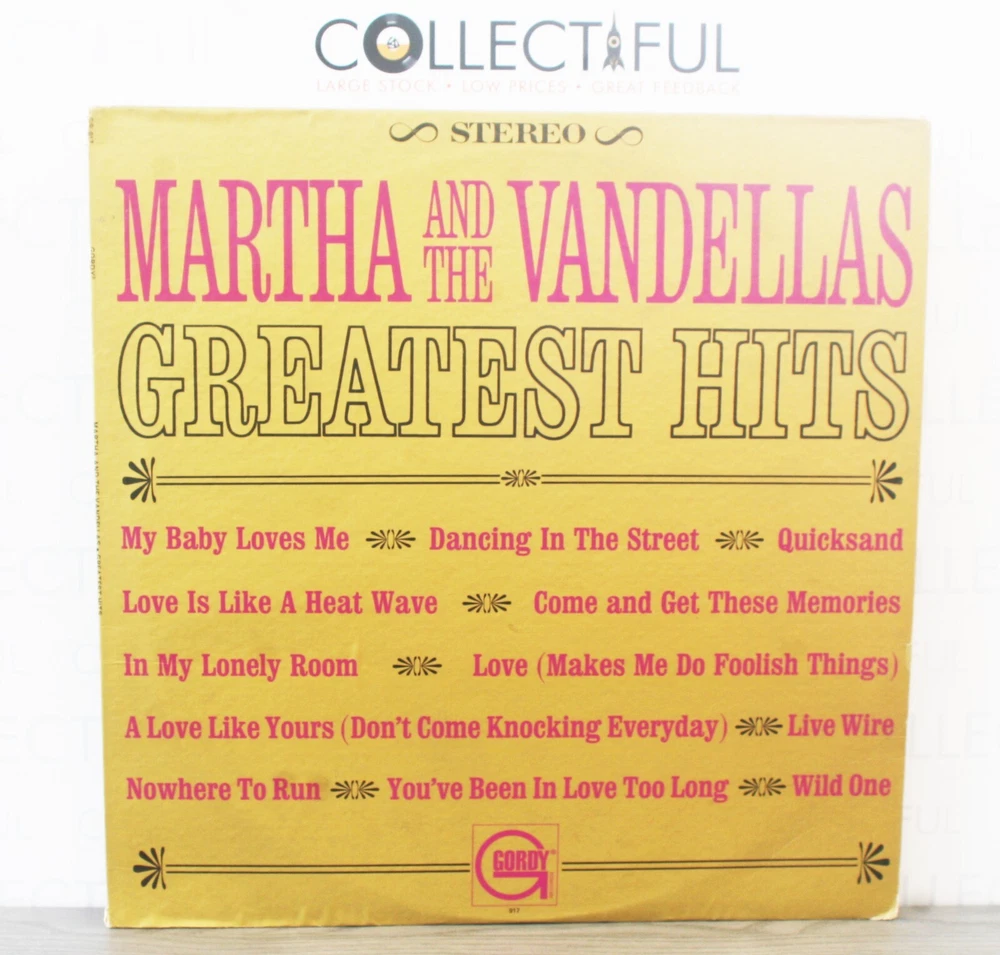 SEE OUR OTHER GREAT MUSIC IN STOCK RIGHT NOW! Combined shipping rates available!!! First item shipping cost as detailed in listing (highest price calculated first) Each additional single LP / CD / DVD : 80c Each Additional Double LP / Double CD or 180g LP : $1.50 Each Additional Triple LP / box set / Double 180gLP : $3.00 SEE BELOW (POINT 2) FOR DETAILS AND INSTRUCTIONS ON COMBINING SHIPPING. PEOPLE WHO THINK THEY CAN RETURN STUFF FOR WHATEVER REASON... SHOP ELSEWHERE!! WE DO NOT ACCEPT RETURNS AND IF WE ARE SOMEHOW FORCED TO, WE WILL MAKE THINGS VERY, VERY DIFFICULT FOR YOU. SO DO YOURSELF A FAVOR AND SHOP ELSEWHERE. WE ARE SICK OF SCAMMERS, TIME WASTERS AND KNOW-IT-ALLS WITH ZERO CREDENTIALS. Please note: unfortunately we will no longer sell to any buyer who has less than 10 feedbacks. If you do buy something from us with less than 10 feedbacks, we will cancel the order. IN THIS SALE: ******************************************************** Artist: MARTHA & THE VANDELLAS Title: GREATEST HITS Label/Info: GORDY TAMLA MOTOWN 1967 CONDITION: SEE *OUR* GRADING SYSTEM BELOW AT POINT 1. DON'T USE SOMEONE ELSES GRADE SYSTEM OR YOUR OWN. THE GRADE WE GIVE IS BASED ON OUR SYSTEM!) IF WE USE A PLUS (+) OR MINUS (-) SYMBOL, IT MEANS THE CONDITION IS BETWEEN GRADES. VINYL: VISUAL GRADE ONLY: VERY GOOD+ (HAS SOME LIGHT MARKS, NOTHING DEEP) (SEE GRADING SYSTEM BELOW. POINT 1) SLEEVE: A S SEEN IN PHOTOS (IF THERE IS A SPINE SPLIT OR SPINE DAMAGE WE WILL INDICATE THAT ON THE NEXT LINE. OTHERWISE BOUGHT AS SEEN IN PICS) . If this LP skips, sounds bad or whatever , that is the chance you take. Scammers, chancers and timewasters, shop elsewhere. NO RETURNS . Bought as seen. We only provide a visual grade. Moany little whiners/returners, please consider this record unplayable. Period. Decent people who know about records, you can trust in our grade, WE HAVE OVE R 30,000 POSITIVE FEEDBACKS FOR A REASON. Apologies for the harsh tone, but we must eliminate those people that are ruining it for all the honest Ebay buyers out there. If a record skips and there are no deep scratches, all you need to do is clean it and that usually helps it a lot! Honest decent Ebayers, we trust you and you can trust us!! ******************************************************** POINT 1: CONDITION GRADING SYSTEM Note: We base our grading system on our opinion. An opinion based on over 40 years selling and grading records, including over 20,000 sales on Ebay alone. So if you are a "know-it-all"and think because you have bought a few hundred records you know how to grade a record better than us, shop elsewhere. We have over 40 years experience and tens of thousands of happy customers. We don't need moaners shopping at our store. This is a business, not a game. VISUAL GRADING SYSTEM FOR VINYL CONDITION (we do not play test LPs): Mint: Only if the record is in a cover that is still sealed in original shrink wrap. Near mint: Very slight imperfections. Possibly only played once, no scratches, perhaps only very slight scuffs from the cover Excellent: Only a couple marks and perhaps a couple of very light scratches or scuffs Very good: Has marks and light scratches but nothing major, only surface. An LP in this grade may well have a bit of surface noise. The level of how that is heard depends on your needle/stereo. Good: Has a lot of marks, mainly only surface and more than likely a couple of very visible, deep looking scratches that are probably heard and some may skip. Definite surface noise will be heard. Fair: Has a lot of surface marks and scratches that are deep, definitely heard and more than likely skip). Definite surface noise will be heard. Poor: Just basically in terrible condition. We only list “poor” LPs if they are ultra rare or collectible! VISUAL GRADING SYSTEM FOR SLEEVE / COVER CONDITION: We do not grade liner bags. If there is a liner bag (one that is not generic) we will show it in the second picture Mint: This pretty much does not exist so we do not use it Near mint: Still in originally unopened shrink wrap, possibly with a couple of slight creases in the sleeve Excellent: May only have slight edge wear/slight scuffing. Very good: Has some edge wear, but nothing that detracts from the overall appearance of the front cover/back cover (except for rubbing which happens on U.S. matt sleeves). May have slight cracking on spines. Good: Has a lot of rubbing (especially on matt sleeves), has edge wear and maybe creases. May have a small split on one of the spines and/or spine damage/a little paper loss. Fair: Has a lot of rubbing (on matt sleeves), possibly spine damage, paper loss due to sticker residue, split spines, creases and handwriting on the cover. Poor: Has rubbing all over (on matt sleeves) spine damage, paper loss, badly split spines, staining and worse. Please note: the photos shown are of the actual item to be sold. So please look at the photos carefully before placing a bid or buying. In any photo, if there is glare or white spots, then that is due to the photography, they do not exist on the item. We do grade these LPs to what we think is fair, but make sure you look at the photos for the condition of the sleeve!!!! POINT 2: COMBINE SHIPPING Follow the instructions below to get the combined shipping rate: BUY IT NOW PURCHASES 1/ Add the LPs you want to your shopping cart. 2/ Go to your shopping cart or purchase history. There is a drop down menu. Select REQUEST TOTAL and then COMMIT TO BUY. 3/ We then send an invoice with the combined ship rate. Note the above process does not work on some ebay phone apps, so if it does not, log in to ebay.com via the web browser on your phone and do not use the app. IF THIS DOES NOT WORK FOR YOU. PAY FULL PRICE AND WE CAN ISSUE A REFUND FOR THE EXCESS SHIPPING, AS LONG AS YOU PURCHASE THE LPS IN ONE TRANSACTION AND NOT SEPARATE ORDERS. AUCTION PURCHASES 1/ DO NOT PAY FOR YOUR AUCTION PURCHASES UNTIL YOU HAVE RECEIVED AN INVOICE FROM US. WE WILL SEND OUT INVOICES ONCE THE WE