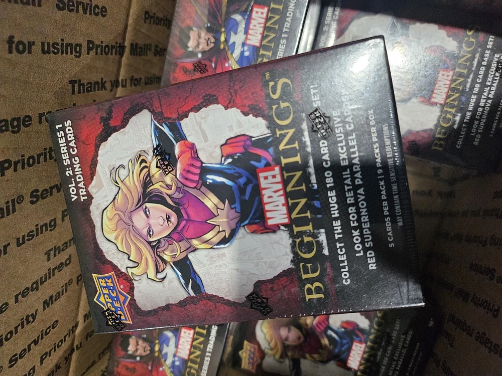 Get ready for an epic adventure with the MARVEL BEGINNINGS Volume 2 Upper Deck Series 1 Blaster Box. This lot of 8 boxes is perfect for fans of the Marvel Cinematic Universe, featuring a variety of non-sport trading cards from the iconic franchise. Each box contains a selection of cards made from high-quality card stock, with a focus on superhero, action, and adventure genres. This configuration of boxes is ideal for collectors and enthusiasts alike, with a total of 8 boxes included in the lot. The cards within each box are perfect for adding to your collection or trading with fellow fans. Don't miss out on this amazing opportunity to own a piece of the Marvel universe.