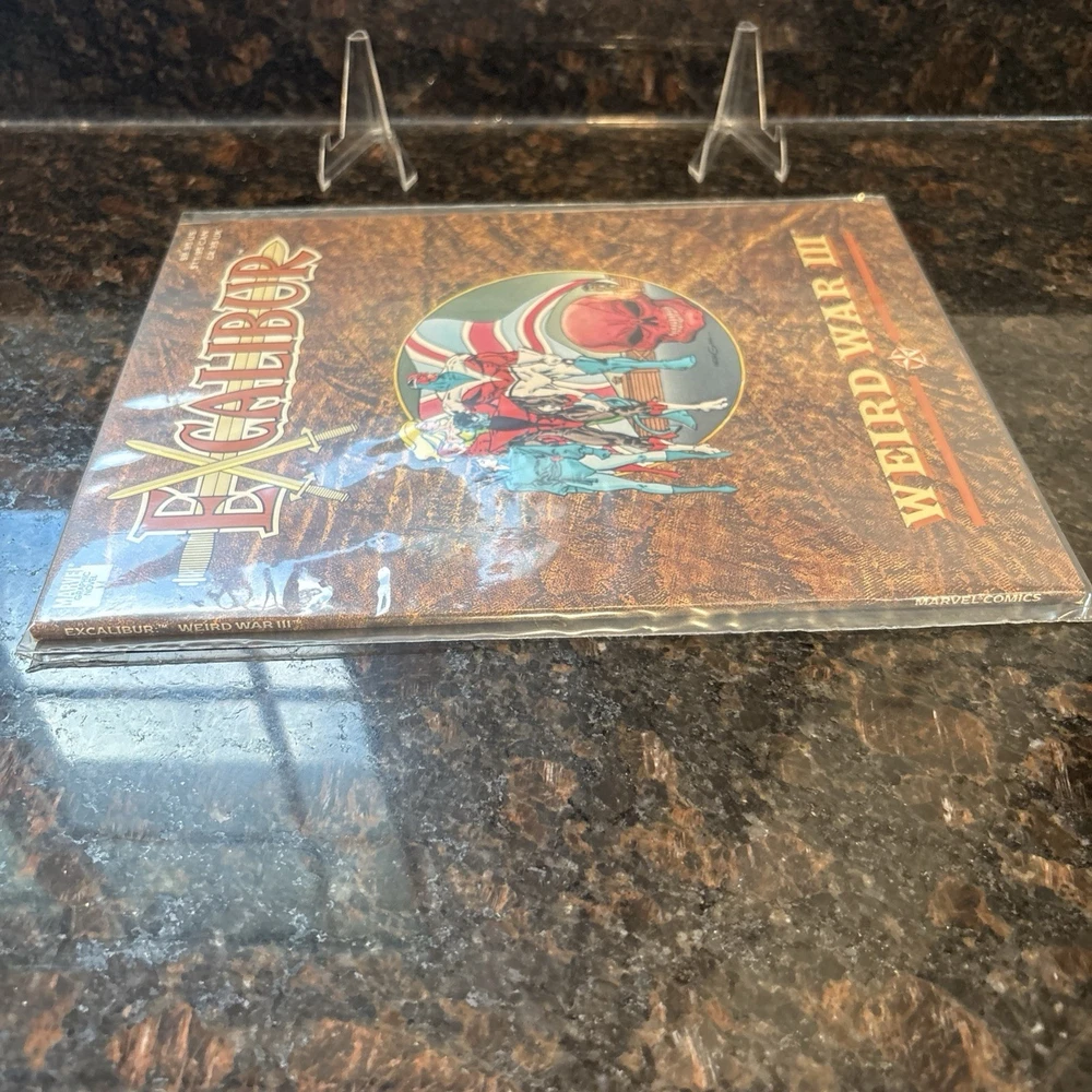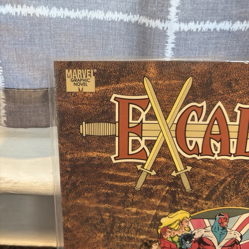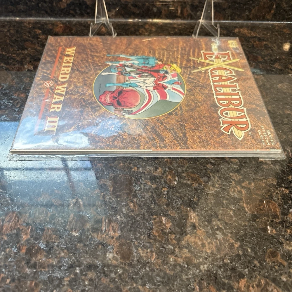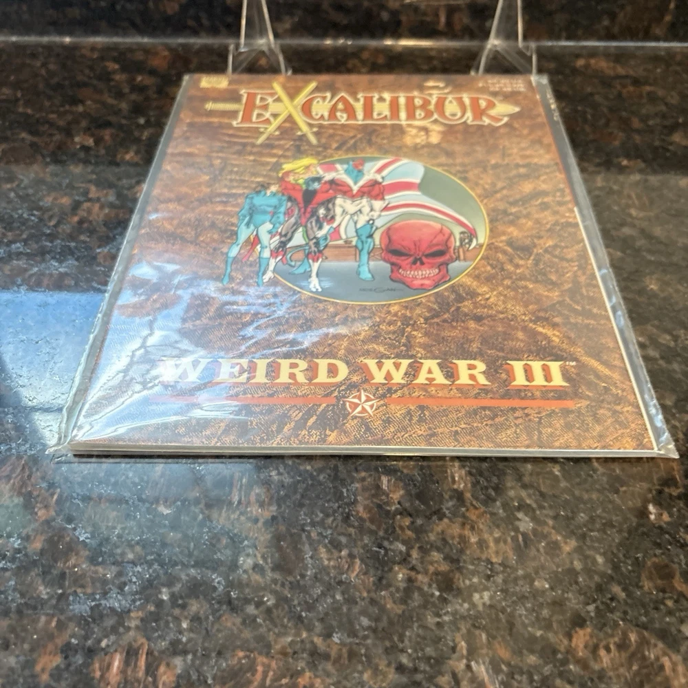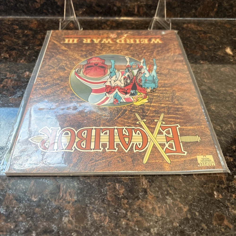 The product is a high-grade Marvel Graphic Novel featuring Excalibur during the "Weird War III" storyline. Published by Marvel Comics in 1990, this softcover comic book with a color style is part of the US Comics tradition. The storytelling, led by Kelly Corvese, Tom Morgan, and other artists and writers, offers a mix of action, superheroes, adventure, and fiction, making it an appealing read for a general audience. With a vintage feel and from the Copper Age era, this single unit comic book is a valuable addition to any collection of Marvel Comics.