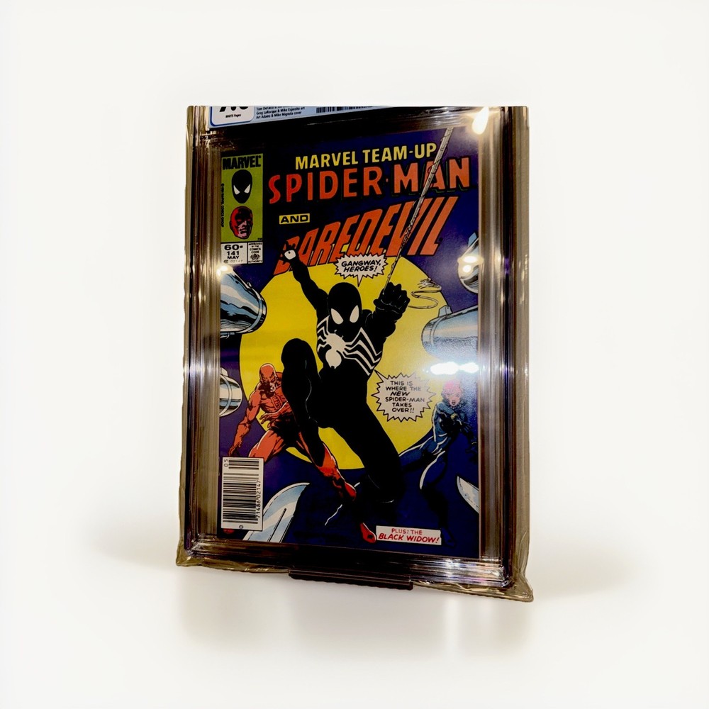 Marvel Team-Up #141 CGC 9.6 NEWSSTAND 1984 – May First appearance of the black costume symbiote. The real deal. Not the direct edition. Off-white pages, spine stress zero, slab flawless. Recently 9.6 newsstands are selling around $600 $525 Buy-It-Now Best offer accepted.
