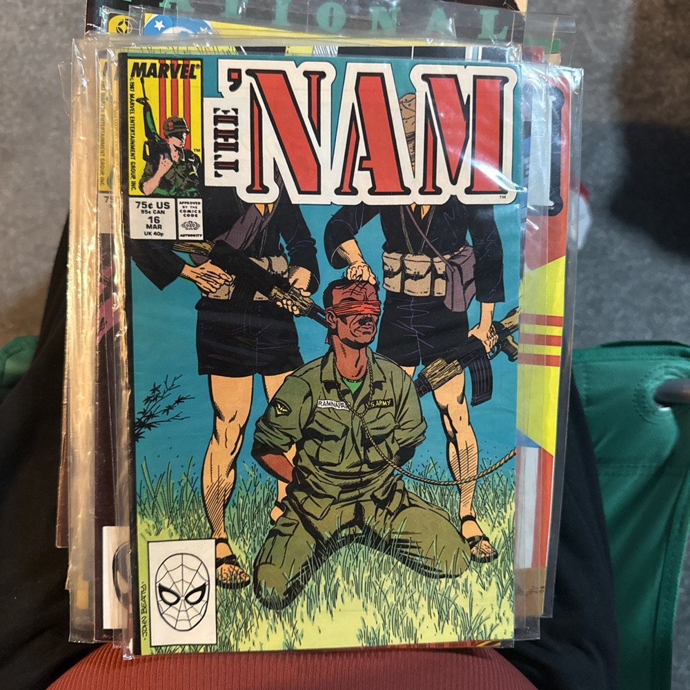 The product is a MARVEL THE NAM COMIC from 1987, specifically issue #16 of March. The comic features characters from the Marvel universe, with notable artists and writers including Phil Felix, Wayne Vansant, Doug Murray, and Geof Isherwood. The cover artist is Bob Camp, and the series title is "The 'Nam." This comic book was published by Marvel Comics in 1988 and falls under the genre of war, making it part of the Copper Age era of US Comics. Set and Certificates of Authenticity (COA) are included with this collectible item.