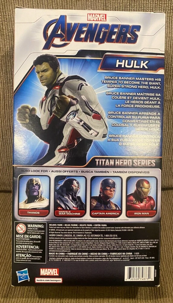 Franchise: Avengers Type: Action Figure Brand: Marvel Size: 12in. Year Manufactured: 2018 UPC: Does not apply gtin13: Does not apply Item Height: 12 in Character: Hulk Movie: Titanic