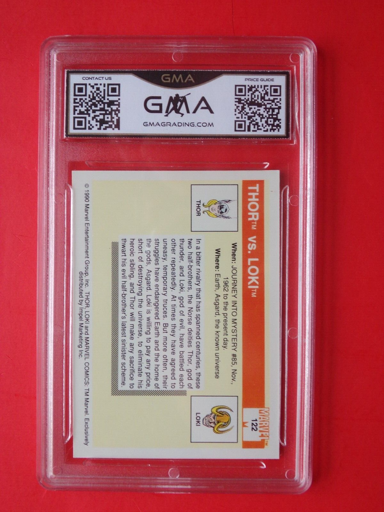 MARVEL UNIVERSE IMPEL 1990 CARDS GMA GRADED 9 MINT #122 THOR vs LOKI FAMOUS BATTLES