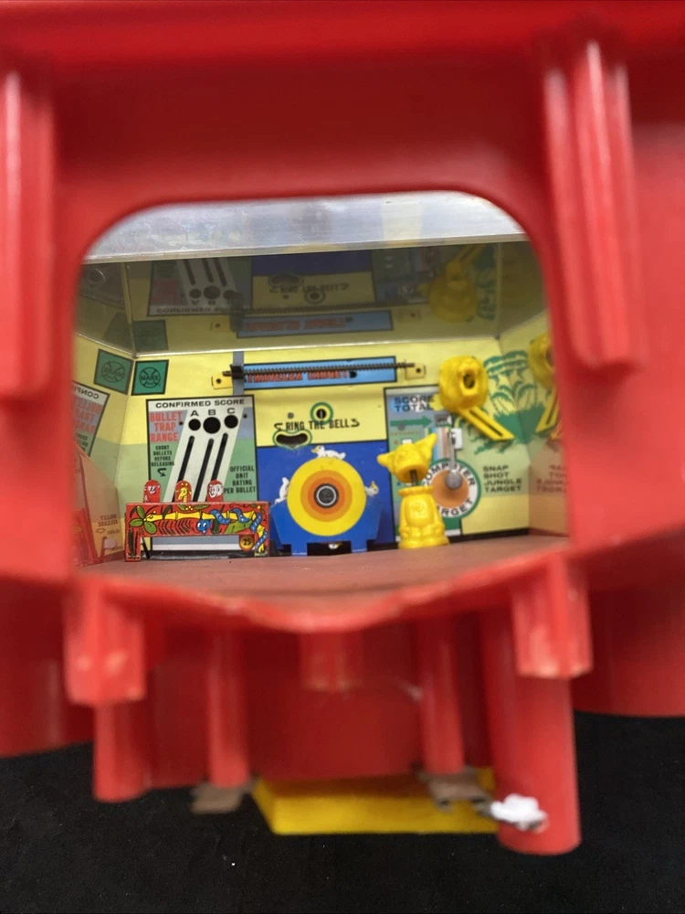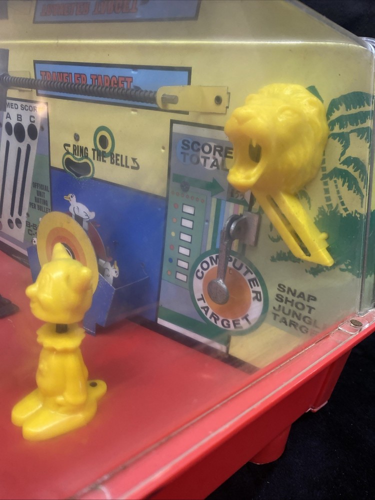The MARX Electro Shot Arcade Shooting Gallery from 1960 is a vintage toy manufactured in the United States. This arcade-style shooting gallery is designed for children aged 8-11 years old and features a gun that is missing and being sold for parts only. The brand, Marx, is known for producing high-quality toys, making this vintage shooting gallery a desirable addition for collectors or enthusiasts of vintage and antique toys. Please note that is missing the gun. Please note that there are small cracks/scratches in the plastic Target winds up and moves Sold as is