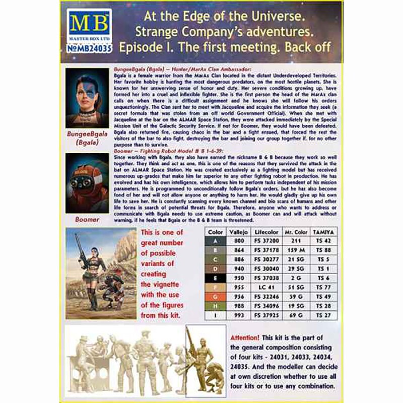 MASTER BOX MB24035 Scale Figure Kit 1:24 Strange Company’s adventures. Episode I. "The first meeting. Back off" - Plastic model kit ---------------------------- If you have a desire to procure a GREATER NUMBER OF ITEMS THAN WHAT IS CURRENTLY DISPLAYED, kindly let us know, and we will happily modify our offerings to suit YOUR EXACT QUANTITY NEEDS. ---------------------------- Scale: 1:24 Manufacturer: Master Box (Ukraine) Country/Region of Manufacture: Ukraine Condition: New in Box Features: Kit Series: Spaceport / Scale Figure Kit At the Edge of the Universe. Strange Company’s adventures. Episode I. "The first meeting. Back off" in scale 1:24 The kit consists of: - 2 figures in different poses The average height of the figures, mm: 75 Figures are not painted Glue and paint are not included The model is suitable for experienced and beginner modelers. ---------------------------- Scale model kits are a great way to create something truly unique and special. Whether you're a beginner or an experienced modeler, we have the perfect kit for you. Our kits are made from high-quality materials and come with detailed instructions, so you can be sure to create a masterpiece. We also offer a variety of accessories and tools to help you customize your model to your liking. With our scale model kits, you can bring your imagination to life. Build your favorite car, plane, or train. Create a replica of your favorite historical figure. Or even build something completely original. No matter what you choose to build, you're sure to have a rewarding and enjoyable experience. So what are you waiting for? Start building your masterpiece today!