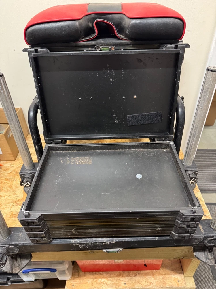 MATRIX S36 SUPER BOX, BLACK EDITION IN FULL WORKING ORDER A SUPERB SEAT BOX WITH SLIDE OUT FOOTPLATE AND 36mm LEG SYSTEM THE BOX FEATURES A NEW CUSTOM MADE CUSHION, UNDER SEAT WINDER TRAY, LARGE SIDE DRAW WITH ORGANISERS AND ORIGINAL CARRY STRAP. THE BOX ALSO COMES WITH A SLIDE OUT STACKER SYSTEM, THIS CONSISTS OF FOUR WINDER TRAYS. DUST AND MUD MARKS, BUT AN OTHERWISE SUPERB BOX GIBBO’S TACKLE IS AN INDEPENDENT BAIT AND TACKLE SHOP BASED IN DIDCOT, OXFORDSHIRE, SELLING BOTH PRE-LOVED AND NEW FISHING TACKLE ITEMS. I HAVE BEEN AN EBAY TRADER FOR OVER 10 YEARS, ALL MY ITEMS ARE FULLY CHECKED BEFORE LISTING, WITH ACCURATE DESCRIPTIONS. ALL ITEMS ARE WELL PACKAGED AND ALL PRICES, INCLUDE FREE UK SHIPPING. BE SURE TO CHECK OUT MY EBAY SHOP, FOLLOW FOR REGULAR UPDATES AND CHECK OUT MY SOCIAL MEDIA.