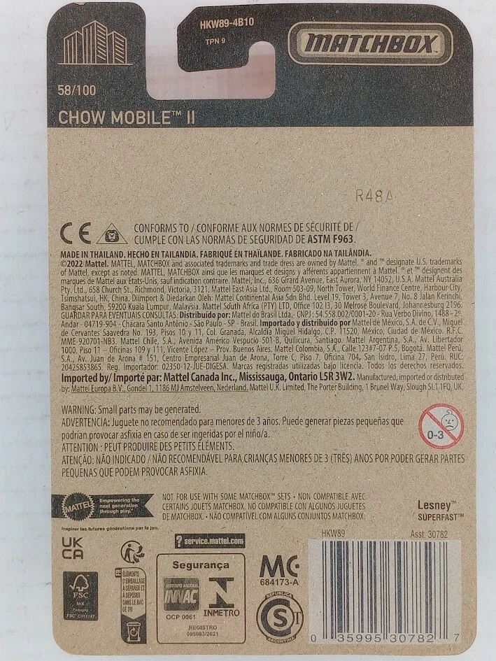 MATCHBOX CHOW MOBILE II FOOD TRUCK 1/64 SCALE NIB USA STOCK!!! SKU#101236 Look closely at the pictures to see further details. We ships USPS PLEASE see photos for detailed condition!! AC PLEASE LOOK AT THE PHOTOS CAREFULLY BEFORE PURCHASING!! If you are purchasing more than one item from us and would like combined shipping, PLEASE request an adjusted invoice from us while still in the cart and BEFORE paying. eBay does not usually calculate combined shipping accurately and you might get overcharged. Please be aware that when we photograph items, we use lighting that will show the details well. Although we try to present the product as accurately as possible, the lighting may affect the overall look of the item by appearing lighter/darker or possibly a different hue than the actual item. Depending on the type of lighting you have in your home, there may be some differences between the photos and the actual item. If this is a concern of yours, please feel free to request additional photos made in natural lighting or ask for a more detailed description of the item PRIOR TO PURCHASE! PLEASE NOTE: We greatly appreciate your interest in our item for sale. We look forward to a pleasant, quick and satisfying transaction for everybody, so please note the following information before bidding. Thank you! ITEM DESCRIPTIONS: * We will try to describe items well and provide plenty of photos. Please review these carefully before bidding or purchasing. * Only the items pictured and described are what you will receive when purchased. * We will occasionally offer an item clearly marked "AS-IS". This means that we are not sure if it works because we are unable to test it for whatever reason. We will offer these at a discounted price then a similar "working" item. It is possible that these items will work fine, but it also is possible that these items are more useful for their parts. Please only bid on or purchase these items if you are well aware of this, as we will only provide refunds of actual item price (no shipping cost refunds) for these items. * If you have any questions that aren't addressed by the descriptions or photos, please feel free to ask before you bid. * There may be bends, dents or parts of the blister that have minor issues due to long term storage. Such things will be pointed out under the description, please look closely at the pictures for further details. SHIPPING: * We usually do not offer shipping to international addresses, but ARE WILLING TO TAKE CONSIDERATIONS. * We try to pack items as carefully as possible, but damage may occur during shipping. If you receive an item that was damaged in shipping, please contact us and we will work with you to resolve the problem. * We will combine shipping costs for all items the same buyer purchases from us within 2 days. Please wait to pay for items until you're done shopping with us. Please contact us if you're expecting to buy more items from us, or to have us adjust the shipping costs. * We will usually ship items out within 24 hours of payment being received Sunday through Friday at noon. We will notify the buyer if there will be a delay in shipping for some reason. Please allow additional time for holidays and weekends when the post office is closed. If payment is received after noon (EST) on Friday, the item might not be shipped until the following Monday. * We do try to recycle shipping materials as much as possible. RETURNS: We abide by eBay's Money Back Guarantee. We definitely want our customers to be happy with their purchase! You may return an item within 30 days of receiving it with the following guidelines: * If the item is defective or damaged (unless we clearly marked the listing "AS-IS"), the buyer will receive a full refund after the buyer returns it and it is received by us. Customers who falsely claim their item is defective, damaged, or not as described in order to receive a full refund and free return shipping will be permanently blocked from making future purchases from us. * If the item is as described (including "AS-IS" items) and the buyer decides for any other reason than defective/damaged to return it, only the actual price of the item will be refunded once it has been returned and it is received by us. The buyer will be asked to pay all original and return shipping charges. This includes all reasons other than defective/damaged, including wrong size, wrong type, changed mind, etc. All "AS-IS" items will fall into this category of return. Please make sure the item is what you want before purchasing it. * Please contact us before initiating a refund request. FEEDBACK: We always leave feedback at the end of transaction. We consider the transaction to be over when we receive feedback from the buyer confirming the item arrived satisfactorily. If you are unsatisfied with your purchase please contact us before leaving neutral or negative feedback. WE APPRECIATE POSITIVE FEEDBACK IF YOU ARE SATISFIED WITH YOUR PURCHASE! THANK YOU FOR YOUR INTEREST IN THIS ITEM! !