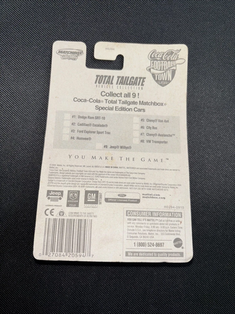 MATCHBOX COCA-COLA FOOTBALL TOWN USA 2004 Dodge Ram Truck Tailgate Collection. Condition is New. Shipped with USPS Ground Advantage.