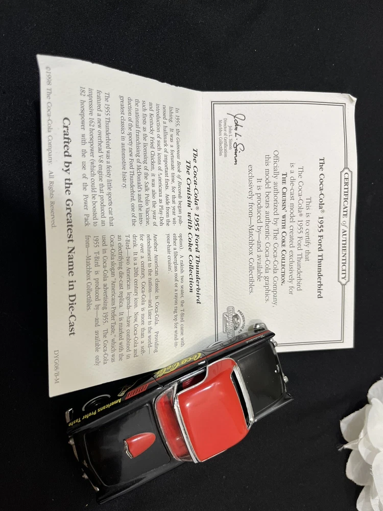 This Matchbox Collectibles Coca Cola Series 1955 Ford Thunderbird is a must-have for any toy car collector. The attention to detail on this model is impressive, from the iconic Coca Cola branding to the sleek design of the 1955 Ford Thunderbird. This model is certified authentic and is a great addition to any collection. The brand of this toy car is Matchbox, and the vehicle make is also Matchbox. The model is a Ford Thunderbird and is part of the Coca-Cola theme. The vehicle year is 1955. This toy car falls under the category of contemporary manufacture and is a great item for collectors of diecast and toy vehicles.