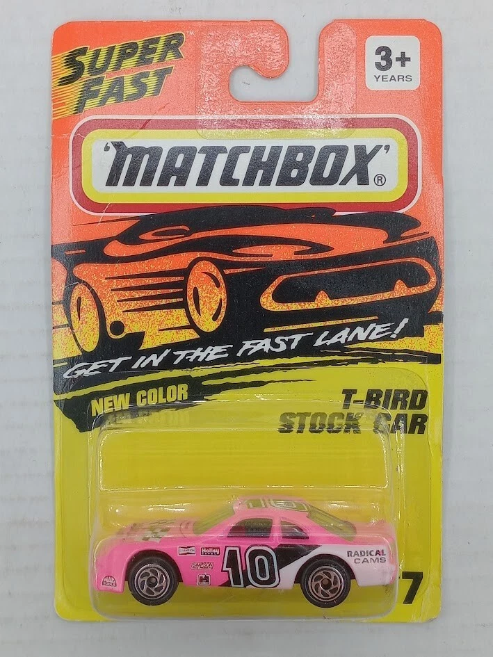 MATCHBOX SUPERFAST MB 7 T-BIRD STOCK CAR 10 RADICAL CAMS NEW ON CARD SKU#101497 Look closely at the pictures to see further details. We ships USPS PLEASE see photos for detailed condition!! AC PLEASE LOOK AT THE PHOTOS CAREFULLY BEFORE PURCHASING!! If you are purchasing more than one item from us and would like combined shipping, PLEASE request an adjusted invoice from us while still in the cart and BEFORE paying. eBay does not usually calculate combined shipping accurately and you might get overcharged. Please be aware that when we photograph items, we use lighting that will show the details well. Although we try to present the product as accurately as possible, the lighting may affect the overall look of the item by appearing lighter/darker or possibly a different hue than the actual item. Depending on the type of lighting you have in your home, there may be some differences between the photos and the actual item. If this is a concern of yours, please feel free to request additional photos made in natural lighting or ask for a more detailed description of the item PRIOR TO PURCHASE! PLEASE NOTE: We greatly appreciate your interest in our item for sale. We look forward to a pleasant, quick and satisfying transaction for everybody, so please note the following information before bidding. Thank you! ITEM DESCRIPTIONS: * We will try to describe items well and provide plenty of photos. Please review these carefully before bidding or purchasing. * Only the items pictured and described are what you will receive when purchased. * We will occasionally offer an item clearly marked "AS-IS". This means that we are not sure if it works because we are unable to test it for whatever reason. We will offer these at a discounted price then a similar "working" item. It is possible that these items will work fine, but it also is possible that these items are more useful for their parts. Please only bid on or purchase these items if you are well aware of this, as we will only provide refunds of actual item price (no shipping cost refunds) for these items. * If you have any questions that aren't addressed by the descriptions or photos, please feel free to ask before you bid. * There may be bends, dents or parts of the blister that have minor issues due to long term storage. Such things will be pointed out under the description, please look closely at the pictures for further details. SHIPPING: * We usually do not offer shipping to international addresses, but ARE WILLING TO TAKE CONSIDERATIONS. * We try to pack items as carefully as possible, but damage may occur during shipping. If you receive an item that was damaged in shipping, please contact us and we will work with you to resolve the problem. * We will combine shipping costs for all items the same buyer purchases from us within 2 days. Please wait to pay for items until you're done shopping with us. Please contact us if you're expecting to buy more items from us, or to have us adjust the shipping costs. * We will usually ship items out within 24 hours of payment being received Sunday through Friday at noon. We will notify the buyer if there will be a delay in shipping for some reason. Please allow additional time for holidays and weekends when the post office is closed. If payment is received after noon (EST) on Friday, the item might not be shipped until the following Monday. * We do try to recycle shipping materials as much as possible. RETURNS: We abide by eBay's Money Back Guarantee. We definitely want our customers to be happy with their purchase! You may return an item within 30 days of receiving it with the following guidelines: * If the item is defective or damaged (unless we clearly marked the listing "AS-IS"), the buyer will receive a full refund after the buyer returns it and it is received by us. Customers who falsely claim their item is defective, damaged, or not as described in order to receive a full refund and free return shipping will be permanently blocked from making future purchases from us. * If the item is as described (including "AS-IS" items) and the buyer decides for any other reason than defective/damaged to return it, only the actual price of the item will be refunded once it has been returned and it is received by us. The buyer will be asked to pay all original and return shipping charges. This includes all reasons other than defective/damaged, including wrong size, wrong type, changed mind, etc. All "AS-IS" items will fall into this category of return. Please make sure the item is what you want before purchasing it. * Please contact us before initiating a refund request. FEEDBACK: We always leave feedback at the end of transaction. We consider the transaction to be over when we receive feedback from the buyer confirming the item arrived satisfactorily. If you are unsatisfied with your purchase please contact us before leaving neutral or negative feedback. WE APPRECIATE POSITIVE FEEDBACK IF YOU ARE SATISFIED WITH YOUR PURCHASE! THANK YOU FOR YOUR INTEREST IN THIS ITEM! ! Look closely at the pictures to see further details. We ships USPS PLEASE see photos for detailed condition!! AC PLEASE LOOK AT THE PHOTOS CAREFULLY BEFORE PURCHASING!! If you are purchasing more than one item from us and would like combined shipping, PLEASE request an adjusted invoice from us while still in the cart and BEFORE paying. eBay does not usually calculate combined shipping accurately and you might get overcharged. Please be aware that when we photograph items, we use lighting that will show the details well. Although we try to present the product as accurately as possible, the lighting may affect the overall look of the item by appearing lighter/darker or possibly a different hue than the actual item. Depending on the type of lighting you have in your home, there may be some differences between the photos and the actual item. If this is a concern of yours, please feel free to request additional photos made in natural lighting or ask for a more d