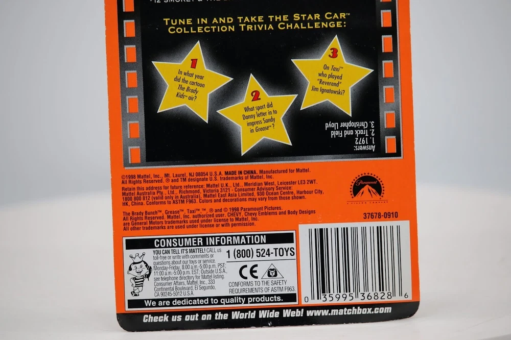 MATCHBOX TV STAR CARS ~THE BRADY BUNCH '55 CHEVY CONVERTIBLE SKU#006436 Look closely at the pictures to see further details. We ships USPS PLEASE see photos for detailed condition!! PLEASE LOOK AT THE PHOTOS CAREFULLY BEFORE PURCHASING!! If you are purchasing more than one item from us and would like combined shipping, PLEASE request an adjusted invoice from us while still in the cart and BEFORE paying. eBay does not usually calculate combined shipping accurately and you might get overcharged. Please be aware that when we photograph items, we use lighting that will show the details well. Although we try to present the product as accurately as possible, the lighting may affect the overall look of the item by appearing lighter/darker or possibly a different hue than the actual item. Depending on the type of lighting you have in your home, there may be some differences between the photos and the actual item. If this is a concern of yours, please feel free to request additional photos made in natural lighting or ask for a more detailed description of the item PRIOR TO PURCHASE! There may be pieces that are missing or broken including, but not limited to, couplers, brake wheels, steps, ladders, railings, etc. May need detailed cleaning. PLEASE NOTE: We greatly appreciate your interest in our item for sale. We look forward to a pleasant, quick and satisfying transaction for everybody, so please note the following information before bidding. Thank you! ITEM DESCRIPTIONS: * We will try to describe items well and provide plenty of photos. Please review these carefully before bidding or purchasing. * Only the items pictured and described are what you will receive when purchased. * We will occasionally offer an item clearly marked "AS-IS". This means that we are not sure if it works because we are unable to test it for whatever reason. We will offer these at a discounted price then a similar "working" item. It is possible that these items will work fine, but it also is possible that these items are more useful for their parts. Please only bid on or purchase these items if you are well aware of this, as we will only provide refunds of actual item price (no shipping cost refunds) for these items. * If you have any questions that aren't addressed by the descriptions or photos, please feel free to ask before you bid. SHIPPING: * We usually do not offer shipping to international addresses, but ARE WILLING TO TAKE CONSIDERATIONS. * We try to pack items as carefully as possible, but damage may occur during shipping. If you receive an item that was damaged in shipping, please contact us and we will work with you to resolve the problem. * We will combine shipping costs for all items the same buyer purchases from us within 2 days. Please wait to pay for items until you're done shopping with us. Please contact us if you're expecting to buy more items from us, or to have us adjust the shipping costs. * We will usually ship items out within 24 hours of payment being received Sunday through Friday at noon. We will notify the buyer if there will be a delay in shipping for some reason. Please allow additional time for holidays and weekends when the post office is closed. If payment is received after noon (EST) on Friday, the item might not be shipped until the following Monday. * We do try to recycle shipping materials as much as possible. RETURNS: We abide by eBay's Money Back Guarantee. We definitely want our customers to be happy with their purchase! You may return an item within 30 days of receiving it with the following guidelines: * If the item is defective or damaged (unless we clearly marked the listing "AS-IS"), the buyer will receive a full refund after the buyer returns it and it is received by us. Customers who falsely claim their item is defective, damaged, or not as described in order to receive a full refund and free return shipping will be permanently blocked from making future purchases from us. * If the item is as described (including "AS-IS" items) and the buyer decides for any other reason than defective/damaged to return it, only the actual price of the item will be refunded once it has been returned and it is received by us. The buyer will be asked to pay all original and return shipping charges. This includes all reasons other than defective/damaged, including wrong size, wrong type, changed mind, etc. All "AS-IS" items will fall into this category of return. Please make sure the item is what you want before purchasing it. * Please contact us before initiating a refund request. FEEDBACK: We always leave feedback at the end of transaction. We consider the transaction to be over when we receive feedback from the buyer confirming the item arrived satisfactorily. If you are unsatisfied with your purchase please contact us before leaving neutral or negative feedback. WE APPRECIATE POSITIVE FEEDBACK IF YOU ARE SATISFIED WITH YOUR PURCHASE! THANK YOU FOR YOUR INTEREST IN THIS ITEM!