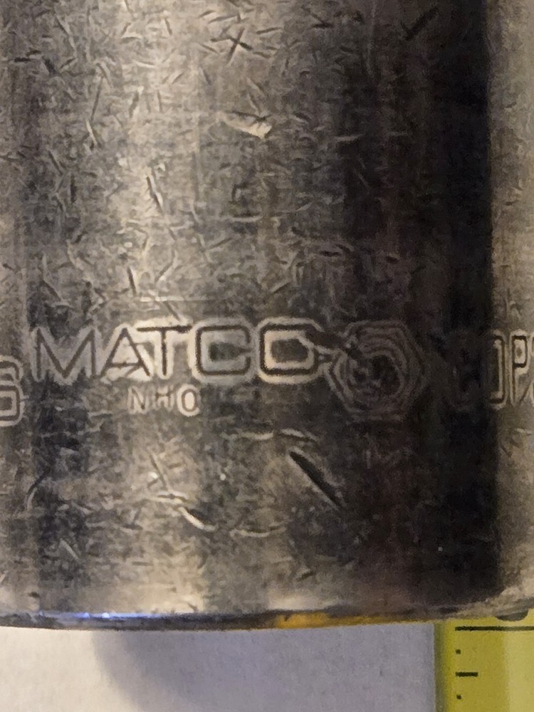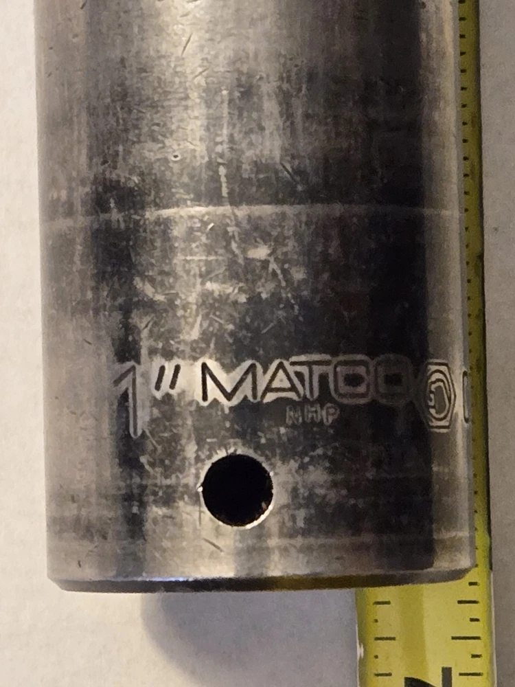 Crafted for durability and precision, these MATCO Tools 1/2" Drive 6 Point Impact Sockets are indispensable for any professional or DIY enthusiast. The set includes one 1-1/16" and 1" socket, both designed to meet the rigorous standards of the SAE system of measurement. The deep configuration ensures a proper fit and reduces the risk of rounding fasteners. With a black oxide finish, these sockets resist corrosion and provide a sleek, professional appearance. The single-item set is composed of high-quality materials, ensuring longevity and reliability. The sockets fit a 1/2" drive and are clearly marked with the Matco part numbers CDP346A and CDP326 for easy identification. PLEASE SEE PICTURES No owner engravings are in very good condition.