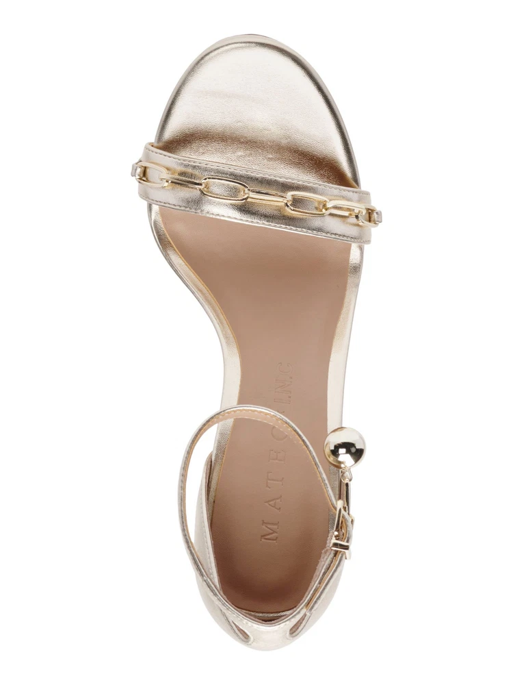 MATEO BY INC Womens Gold Paper Clip Chain Open Stiletto Heeled Sandal 5 M