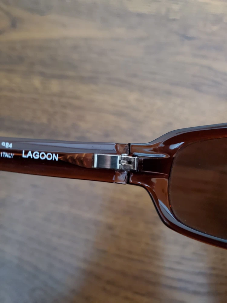 Maui Jim Lagoon made in Italy 189-26, 62 20, sunglasses brown with Case, see pics for measurements, the left arm goes out a tad bit more than the right, as pictured, no returns. Shipped USPS