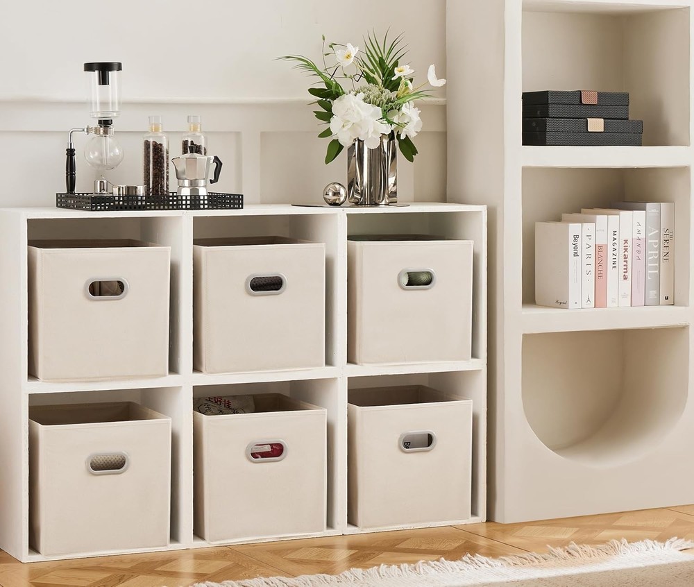 Set of 6 for Ample Storage: Comes with six storage bins, offering enough space to organize a variety of items. Whether it's clothes, toys, or books, you can separate and store them neatly, helping you keep your living space clutter - free. Foldable Design for Space - Saving: When not in use, these bins can be easily folded flat. This is extremely convenient for those with limited storage space. You can tuck them away in a corner or under the bed until the next time you need them. Sturdy Fabric Construction: Made from high - quality fabric material, these bins are built to last. The fabric is thick enough to withstand the weight of your items without sagging or tearing, ensuring long - term usability. Convenient Handles: Each bin is equipped with durable handles. The handles are designed for easy gripping, allowing you to pull the bins out from shelves or move them around effortlessly. Each storage box features a convenient business card, allowing you to label and organize your supplies with ease. Simply write down the contents on a card and slide it in for quick identification and hassle-free searching! Versatile Usage: These storage bins are suitable for multiple locations in your home. Use them in the closet to organize clothes and accessories, in the bedroom for storing personal items, or in the nursery to keep baby essentials and toys organized. They blend well with different home decors. Brand MAX Houser Color Beige Product Dimensions 12"L x 12"W x 12"H Unit Count 6 Count Item model number Open Storage Bins Is Discontinued By Manufacturer No Number of pieces 6 Batteries required No Material Nonwoven fabric Finish Type Non-woven Fabric Capacity 5 Kilograms Manufacturer MAX Houser UPC 192278032828 Item Weight 5.28 pounds Finish types Non-woven Fabric 7225268