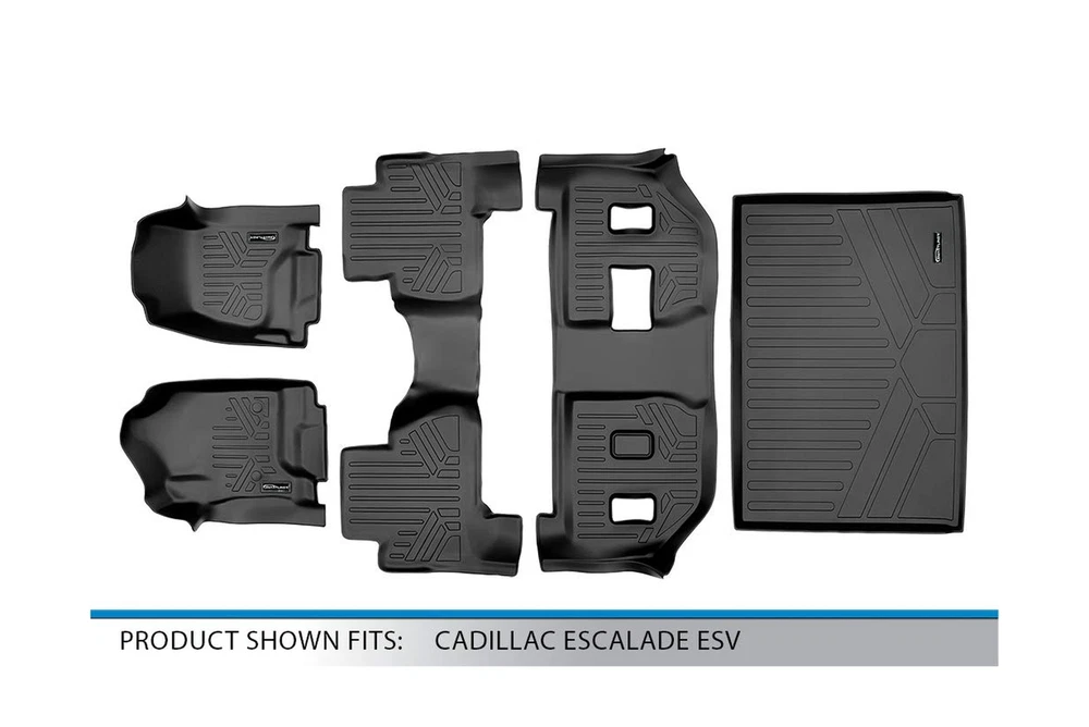 MAXLINER All Weather Custom Fit 3 Row & Cargo Liner Behind The 3rd Row Black Floor Mat Liner Set Compatible with 2015-2020 Cadillac Escalade (Only Fits ESV Models) Description Features: Compatible With 2015-2020 Cadillac Escalade (Only Fits ESV Models) ALL WEATHER PROTECTION - These floor liners offer all-weather, stain-resistant protection against all the elements, including snow, mud, sand, and salt water. CUSTOM FIT - Raised lip and custom design constructed using innovative vehicle scanning technology ensures the perfect fit to protect your vehicles carpet floor from the weather, spills, and any messes. EASY TO CLEAN - These mats are easy to clean by hosing off or spot-cleaning with a damp cloth using soap and water. Enhance the overall appearance of your cars interior with our textured, skid-resistant, sleek design. ECO-FRIENDLY - Our 100% odorless protection is made using a 100% recyclable plastic-rubber and polyethylene blend. Product Details: Color: Black Brand: MAX LINER Product Dimensions: 48"L x 32"W x 6"Th UPC Global Trade Identification Number: 13 Manufacturer: MAXLINER Manufacturer: MAXLINER Brand: MAX LINER Model: MAX LINER Item Weight: 23.3 pounds Product Dimensions: 48 x 32 x 6 inches Country of Origin: Thailand Item model number: A0136-P/B0166/C0166/E0159 Is Discontinued By Manufacturer: No Manufacturer Part Number: A0136-P/B0166/C0166/E0159 Date First Available: December 7, 2017 Handling We will ship all orders within of payment. Delivery We Do Not Ship Outside of the Continental US. Return Policy All items qualify for returns within 30 days of receipt. Buyer is responsible for return shipping on any item that is not damaged. Feedback We take our reputation seriously, we buy and sell online, so we understand the value of trust. If you are unsatisfied with your order, please contact us and we will work with you to resolve it to your satisfaction.