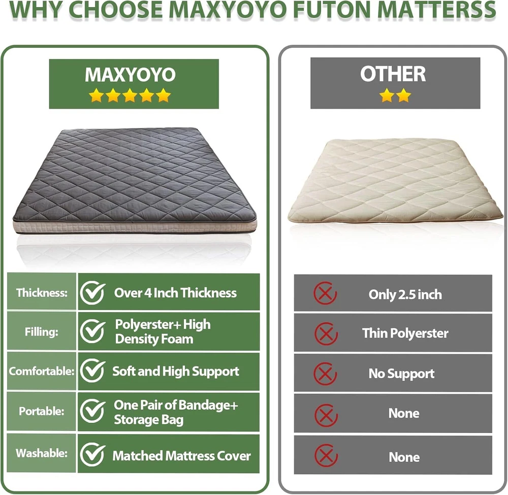 MAXYOYO Japanese Floor Futon Mattress Queen Size, Floor Mattress for Adults