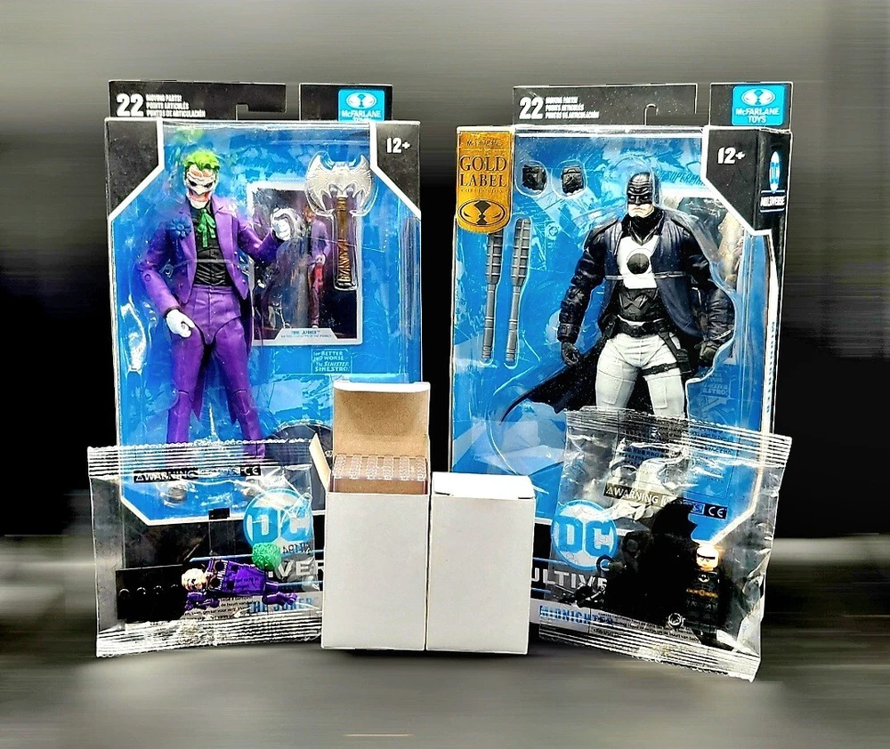 - 2 TOYS MCFARLANE DC MULTIVERSE BATMAN & JOKER. * 1 Mcfarlane DC Multiverse Batman Midnighter Gold Label. 1 Mcfarlane Toys DC Multiverse Joker Death In The Family. - 2 Unopened Minifigures ( Batman VS Joker ). - 2 Showcase building blocks.