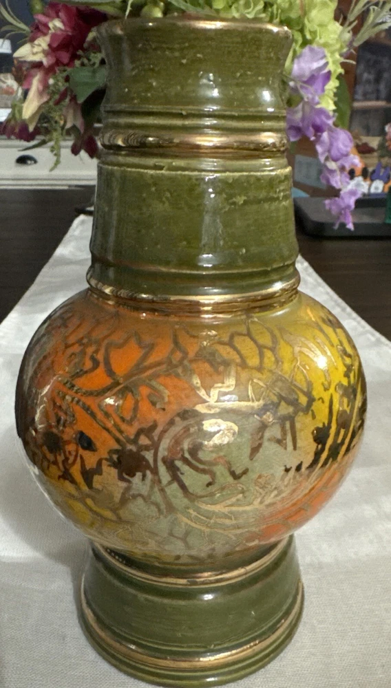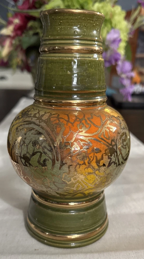 This stunning mid-century modern vase is a true gem for any collector. The beautiful green, yellow, and orange glossy finish is hand-painted with intricate details, making it a one-of-a-kind decorative piece. Measuring 4.5 inches in length and width, and standing at 8 inches tall, this vase is perfect for all occasions and adds a touch of vintage charm to any room. Crafted by Bitossi in Italy in the 1960s, this vase is an original piece and features a handmade design with a painted backstamp. The vase is made of high-quality ceramic and is perfect for displaying flowers or as a standalone decorative item. Care instructions include hand wash only, and the vase comes with a set that includes one item. Add this unique and beautiful vase to your collection today!
