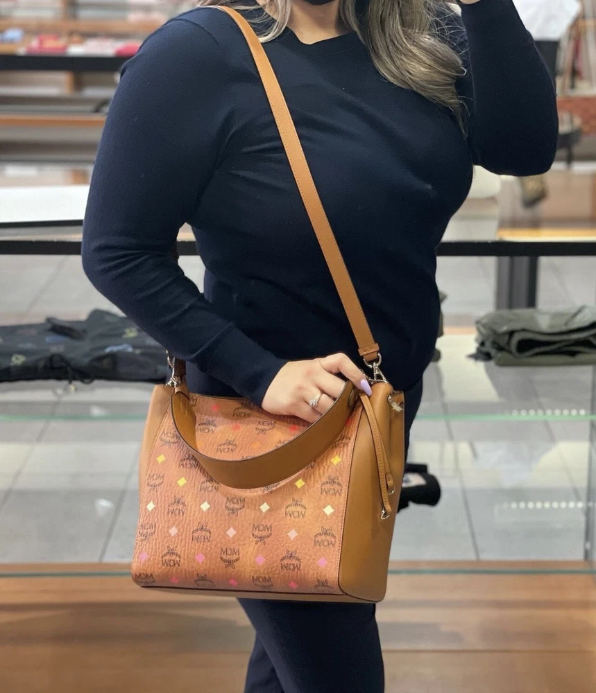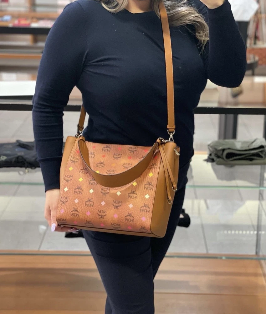 HomeMCM Medium Klara Monogram Leather Hobo Bag Brand NEW W/TAGS! Cognac+Dust $850