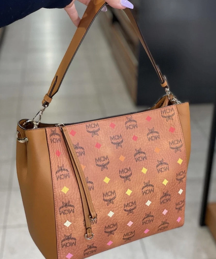 MCM Medium Klara Monogram Leather Hobo Bag Brand NEW W/TAGS! Cognac+Dust $850