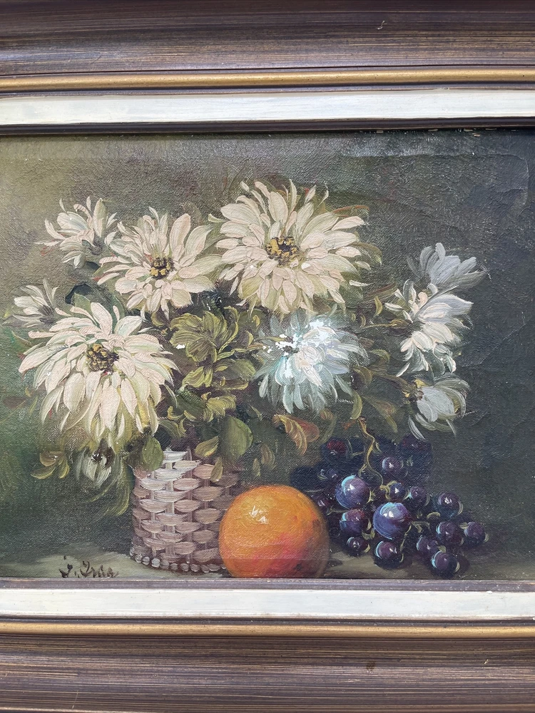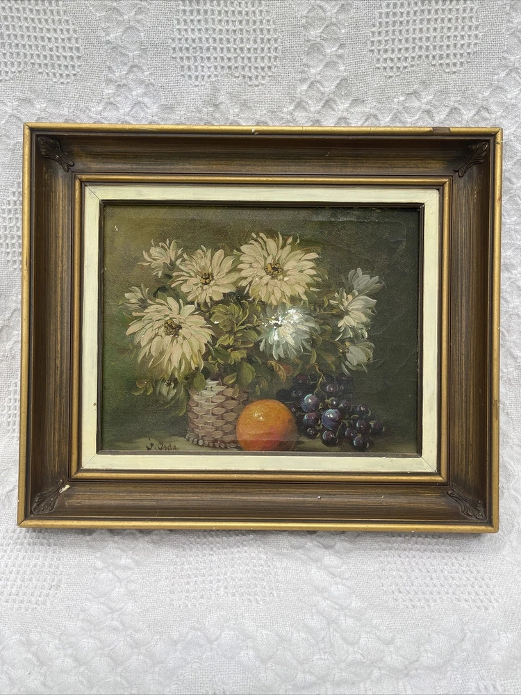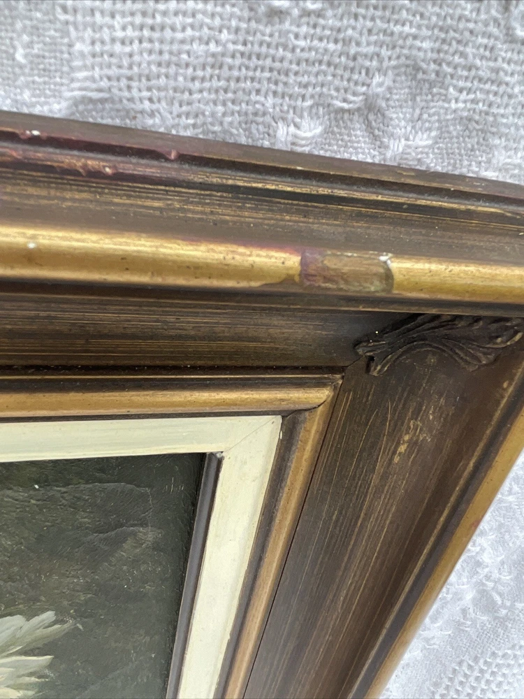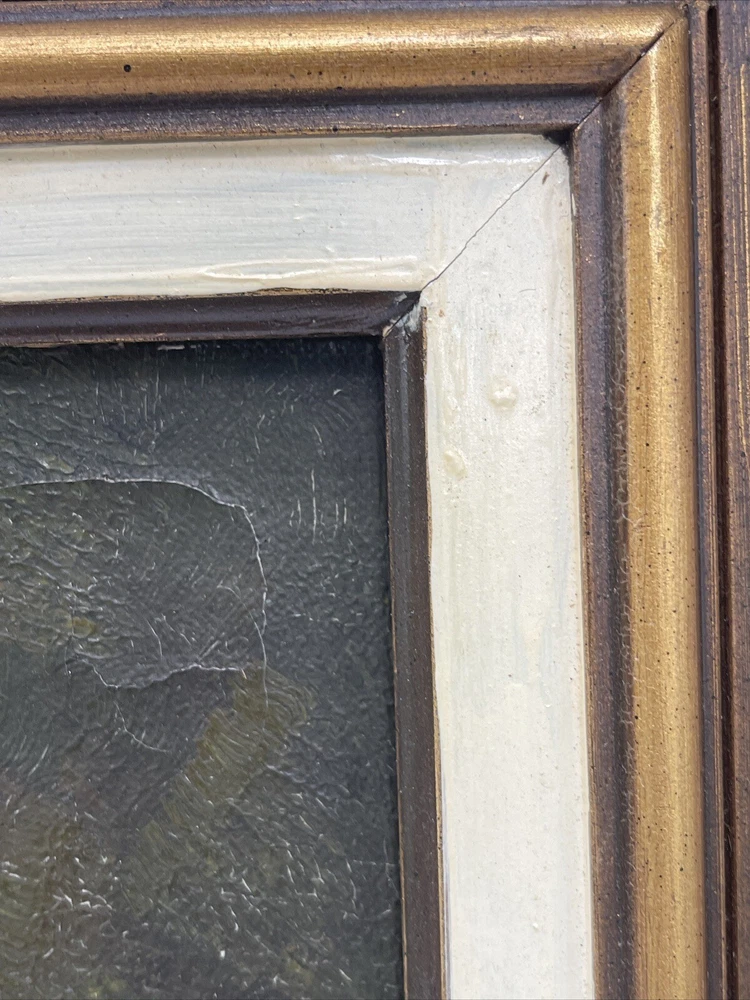 Please see photos. There is some peeling/damage to the paint. Lovely painting.