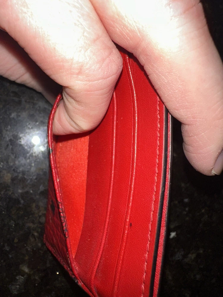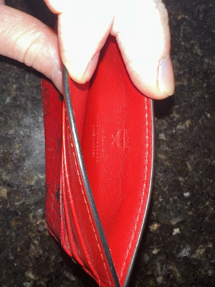 Color: Red Brand: MCM Department: Men Type: Wallet Theme: Metal Material: Leather