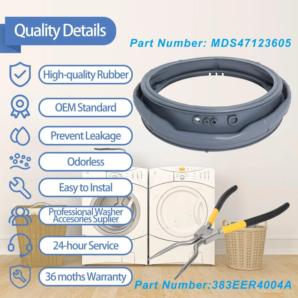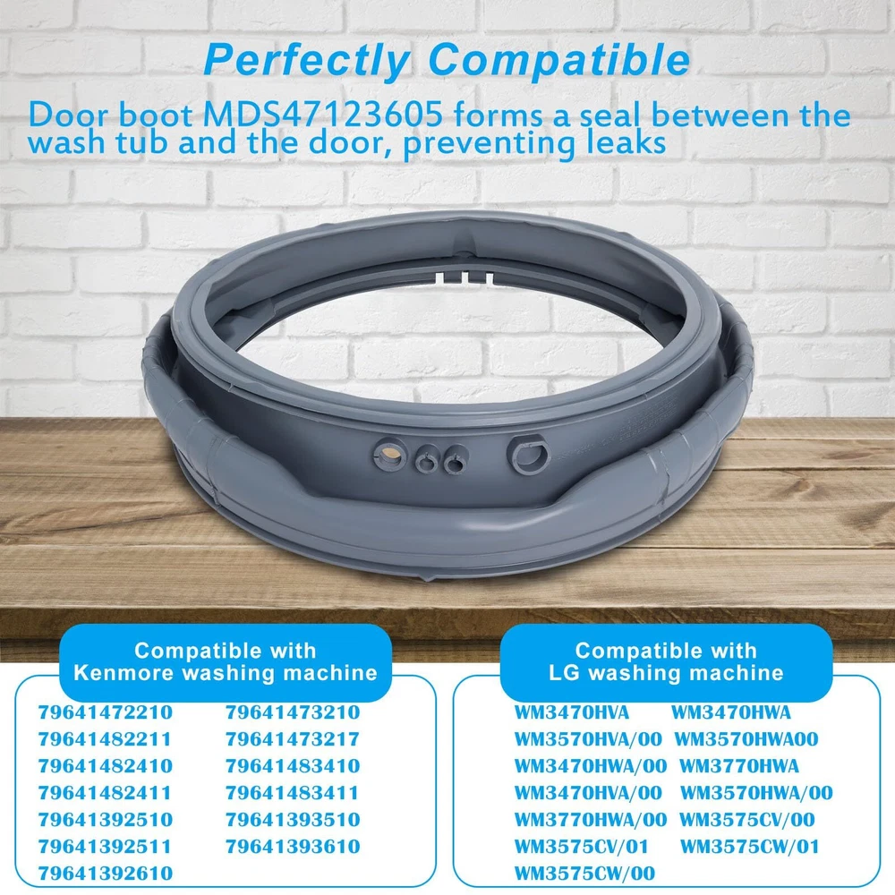 MDS47123605 Washer Door Gasket for LG WM3470HVA WM3770HWA WM3370HWA WM3570HWA Very limited stock! Order now to avoid disappointment! ๐๐๐๐๐๐๐๐๐๐๐ Washer Door Boot Gasket: MDS47123605 Washer replacement seal replace part numbers: MDS47123605, AP5602285, 2630175, AH3648651, EA3648651, PS3648651.This Door Boot Seal is not a universal .If you are not sure whether the parts you ordered are suitable for your washing machine model , please feel free to contact us before ordering. (This is Non-Original Aftermarket Parts .๏ผ ๐๐ผ๐บ๐ฝ๐ฎ๐๐ถ๐ฏ๐น๐ฒ ๐๐ถ๐๐ต ๐๐ฒ๐ป๐บ๐ผ๐ฟ๐ฒ ๐ ๐ผ๐ฑ๐ฒ๐น๐: 79641472210๏ผ79641482211๏ผ79641482410๏ผ79641482411๏ผ79641392510๏ผ79641392511๏ผ79641392610๏ผ79641473210๏ผ79641473217๏ผ79641483410๏ผ79641483411๏ผ79641393510๏ผ796413936102. ๐๐ผ๐บ๐ฝ๐ฎ๐๐ถ๐ฏ๐น๐ฒ ๐๐ถ๐๐ต ๐๐ ๐ ๐ผ๐ฑ๐ฒ๐น๐: WM3470HVA, WM3470HWA, WM3470HWA/00, WM3470HVA/00, WM3570HWA/00, WM3570HWA00, WM3570HVA/00, WM3575CW/00, WM3575CW/01, WM3575CV/00, WM3575CV/01, WM3770HWA, WM3770HWA/00.WM3370HWAABWEEUS ๐๐๐ฌ๐ก๐๐ซ ๐๐จ๐จ๐ซ ๐๐๐ฌ๐ค๐๐ญ ๐ ๐ข๐ญ ๐ณ๐ผ๐ฟ ๐๐๐ฌ๐ก๐๐ซ : Replacement door gasket compatible with LG Kenmore washer front-load washers.Forms the seal between the door and the tub. The gasket creates a waterproof seal between the door and the washing machine, preventing water from leaking out during the wash cycle,making your washer work well. ๐จ๐ฝ๐ด๐ฟ๐ฎ๐ฑ๐ฒ ๐ค๐๐ฎ๐น๐ถ๐๐ ๐ช๐ฎ๐๐ต๐ฒ๐ฟ ๐๐ผ๐ผ๐ฟ ๐๐ผ๐ผ๐ ๐ฆ๐ฒ๐ฎ๐น : :Made of high-quality and durable rubber material that is resistant to wear and tear,ensuring long-lasting use. MDS47123605 Washer Door Boot Gasket-washer door boot seal forms a seal between the wash tub and the door, preventing leaks. Solve these follow issue: Splashes water during operation Cannot be sealed Door seal has Broken Door Gasket had mold Odors cannot be eliminated Abnormal noise Compatible with LG Washer Models: WM3470HVA, WM3470HWA, WM3470HWA/00, WM3470HVA/00, WM3570HWA/00, WM3570HWA00, WM3570HVA/00, WM3575CW/00, WM3575CW/01, WM3575CV/00, WM3575CV/01, WM3770HWA, WM3770HWA/00.WM3370HWAABWEEUS Compatible with Kenmore Washer Models : 79641472210๏ผ79641482211๏ผ79641482410๏ผ79641482411๏ผ79641392510๏ผ79641392511๏ผ79641392610๏ผ79641473210๏ผ79641473217๏ผ79641483410๏ผ79641483411๏ผ79641393510๏ผ796413936102. Before you purchasing, please carefully confirm whether the part number is suitable for your washer. ๐๐ฎ๐๐ ๐๐ผ ๐๐ป๐๐๐ฎ๐น๐น: this MDS47123605 washing machine door seal can be directly replaced. You can follow YouTube videos on removal and installation and they were very helpful. The inner/outer spring expansion tool worked well.NOTE:Unplug the washer before installing this part. Wear work gloves to protect your hands.Kit Include :1pc *MDS47123605 Washer Door Bellow, 1 pc* 383EER4004A Washing Machine Inner/Outer Tub Spring Expansion Removal Tool and 1 pair glove The product is not sponsored or endorsed by ,or affiliated with the brands it fit ,including LG,kenmore Shipping The shipping time might be shorter than shown since the estimated delivery dates already include possible delays . We are always working hard to ensure your package arrives as soon as possible. Please understand that some factors like weather, high postal traffic, and the performance of shipping companies are outside of our control. We offer free shipping to the lower 48 states and ship within 3 business days of payment , usually sooner. We do not accept P.O. Boxes. Please provide a physical address. For shipping outside of the continental USA, we only use eBay's Global Shipping Program . The item is shipped to KY and then sent to the rest of the world. International customers are responsible for all duties and taxes. Continue to check out in order to calculate costs for shipping the item to your country. Messages regarding eBay's Global Shipping Program MUST be directed at eBay EXCLUSIVELY.We ship within Three business days of payment, usually sooner. Return We offer a 30-Day Free-Return Policy on items which you are not completely satisfied with. No returns are available on items shipped outside of the USA. Payment We accept payment by veriety of payment methods such as Paypal . Please see the payment options in the checkout. Feedback We try our very best to make sure every customer is completely satisfied. If there's a problem, message us! We're happy to help. Contact Us If you have any queries, please contact us via ebay. We usually respond within 24 hours on weekdays. Please visit our eBay store to check out other items for sale! Thank you for shopping at our store.