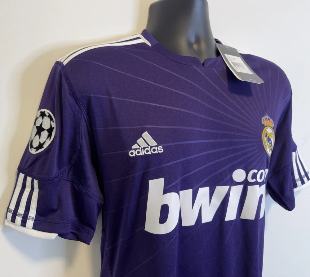MEDIUM BNWT Real Madrid 2010/11 Third Jersey Shirt 10/11 3rd Top Kit Ronaldo Era. Dispatched via Canada Post. Authentic Real Madrid FC X Adidas product. Product code: P95678 Brand new with tags condition. No stains, holes, marks or other blemishes on the fabric. The shirt has been stored out of direct sunlight to avoid any heat related damage. Shirt sponsor (bwin) is in perfect condition with no peeling, cracking or lifting. Adult size Medium (M). Pit-to-pit measurement is approximately 21 inches. Shoulder-to-hem measurement is approximately 30.5 inches. Official Champions League Star Ball patch on right sleeve. Official Champions League Trophy (9 times winners) patch on the left sleeve. The patches are the official flock material and have been professionally applied. They show no peeling or other signs of wear. All pictures are my own and are of the exact shirt you will receive. All available items ship from a pet-free and smoke-free environment. All purchases will be packed securely and shipped the next working day.