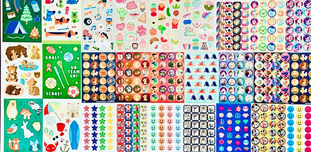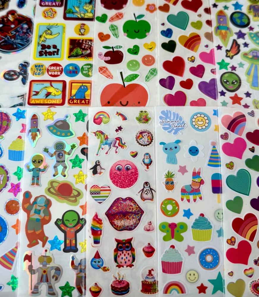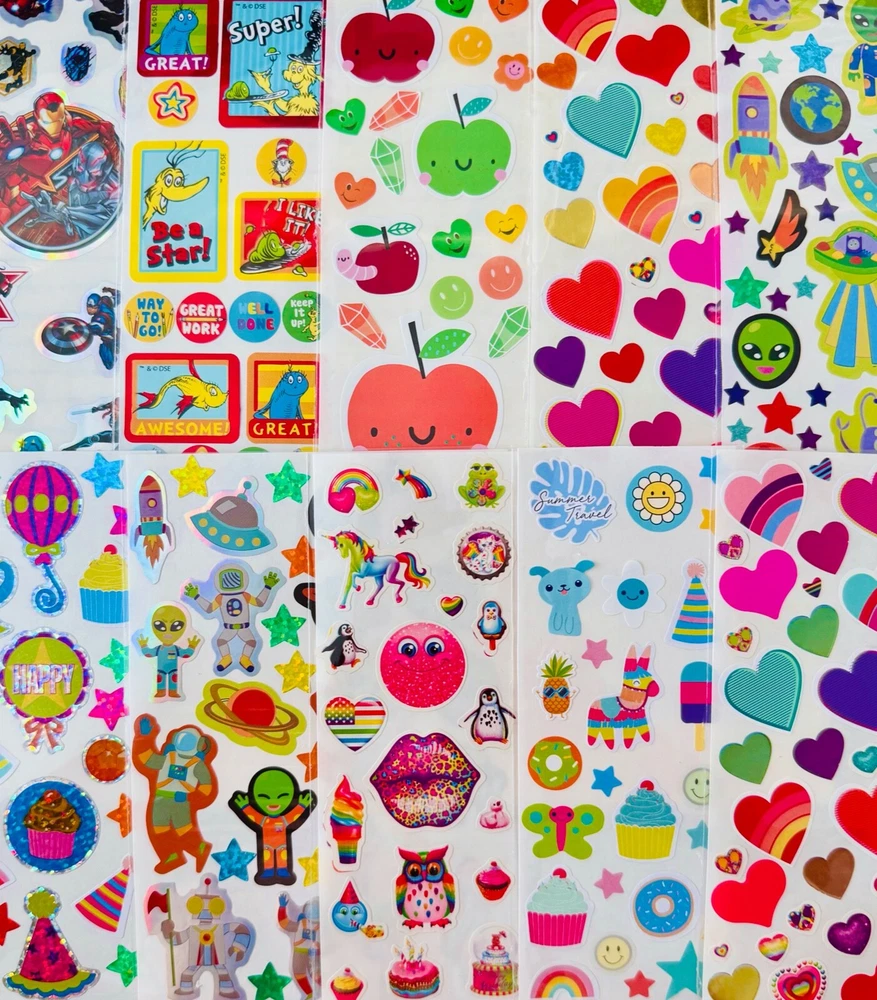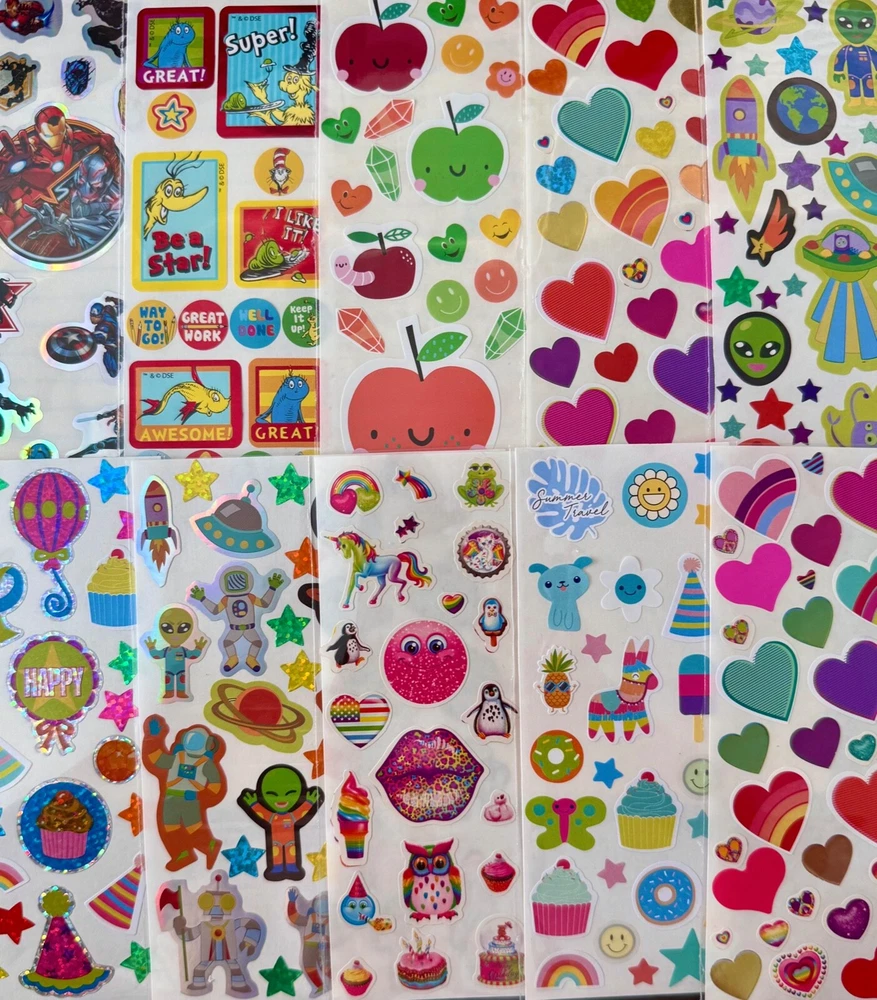 MEGA Mixed Sticker Lot | The Ultimate Sticker Collection | Qty. 499+ Stickers Fun Assortment of Glossy, Glitter, Puffy, Scrapbook, Cartoons, Bubble, 3D, Pop Up, Foil, Metallic Stickers For Everyone! I have included a large variety of pictures of the assortment available. The pictures give you an idea of what you will be receiving. Please Note: You will not receive everything pictured. Please contact me with any special requests. This HUGE Variety of fun designs stickers can be used in parties, classroom, school and home, good for reward for students, potty training, adding inside a birthday card, game activities, entertaining toddlers, etc. Perfect Gifts for Kids & all Occasions: Can be given as a gift for kids, girls, boys, toddlers, teens, students, friends, and classmates, they will love it! Each package of stickers is a different style & theme with some lovely embellishments like rhinestones, ribbons, buttons and other 3D details that make these quality stickers look so unique!