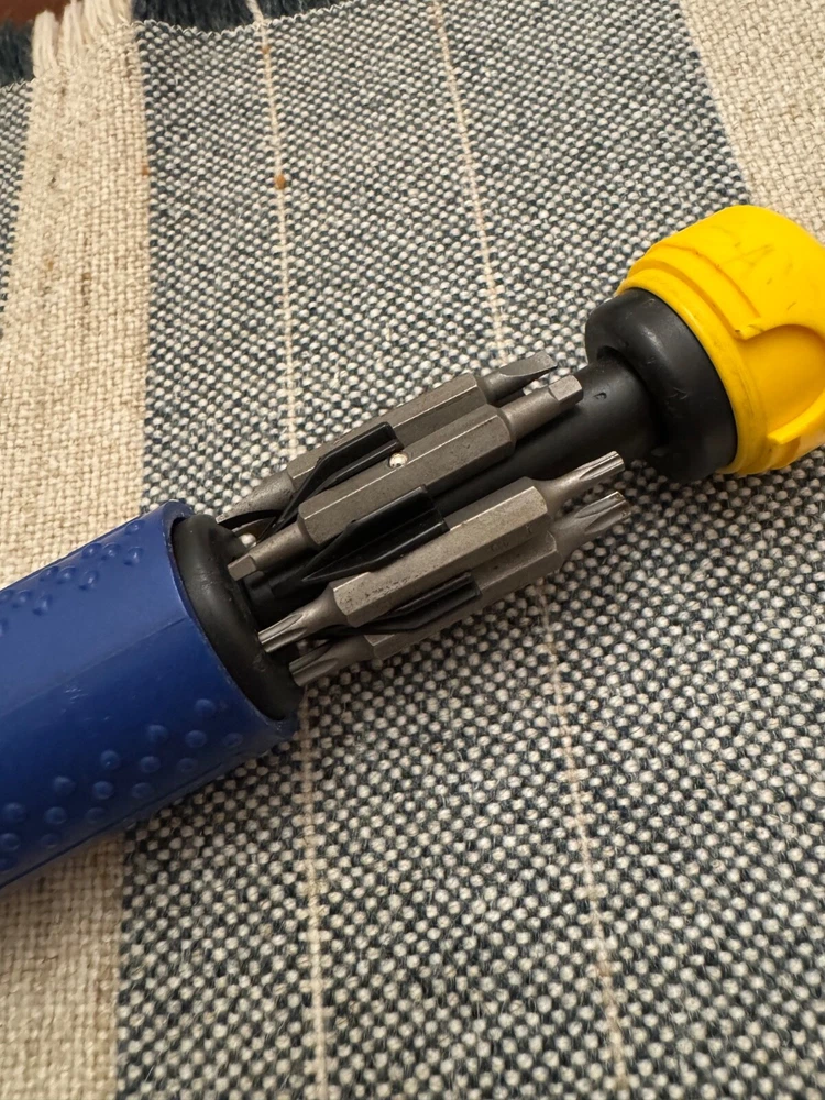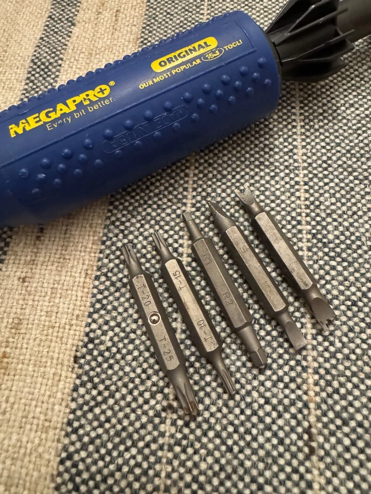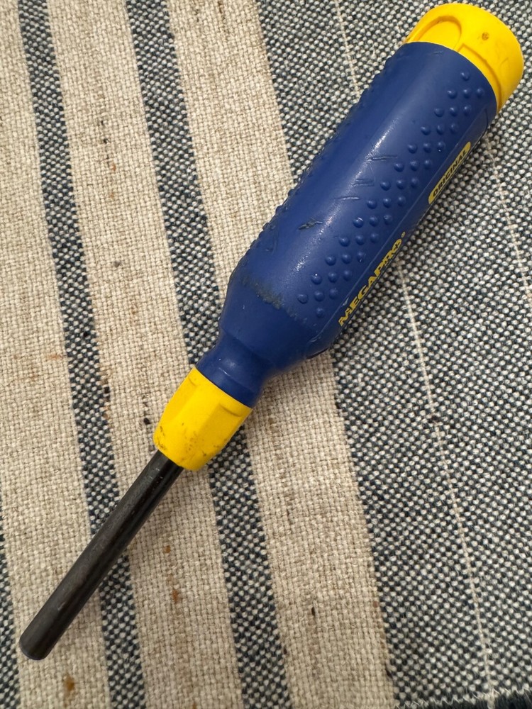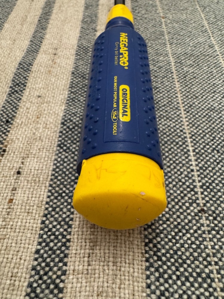 Megapro magnetic screwdriver with bit storage. Comes with 5 security bits, one has a broken tip. It is in decent working condition with some signs of wear. The handle has some deeper scratches and has some slight owners markings. Please see pictures for condition. I used to sell tools using a family member’s eBay account. I made my own account because I've decided to continue selling these lovely vintage tools for a while. You may recognize the style of my photos if you've bought vintage Craftsman or Stanley tools from me before. I try my best to give these old tools a new life so that others can enjoy them for years to come. My dad made a living using tools just like these and I'm sure many of you have dads (or moms) that did the same. I’m happy to combine shipping for multiple items and refund the difference. If you have any questions at all, please feel free to message me. Best always, Mike