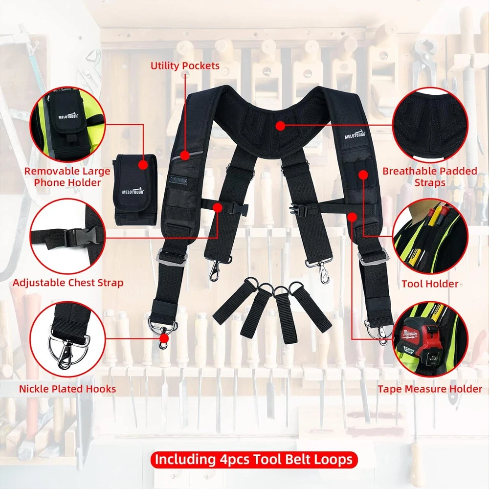 MELOTOUGH Tool Belt Suspenders Construction Bag Suspenders Heavy Duty Padded Wor