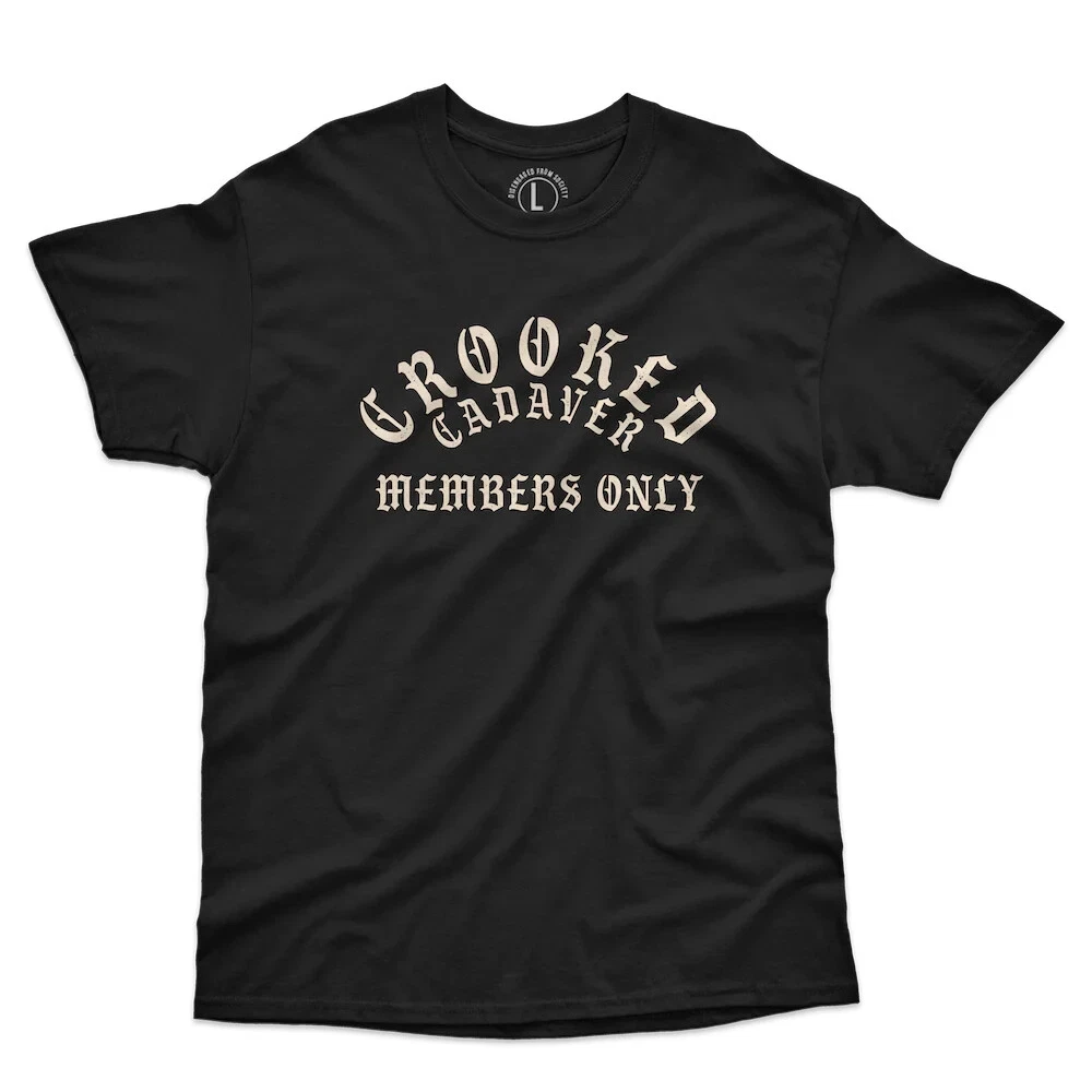 MEMBERS -BLK PANTHER MENS BLK TEE P/N TMEMB-B-L/XL MEMBERS TEE Join the clubhouse and show off your style with the Members Tee from Crooked Clubhouse. This black tee features a sick design on back and front, making it perfect for any casual occasion.