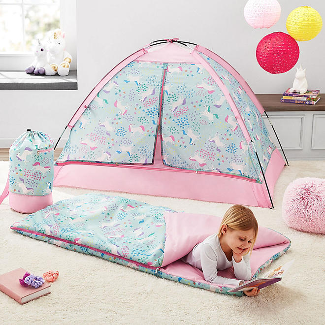 *SALES TAX NOW CHARGED ON ALL ORDERS* ITEM IS NEW IN PACKAGING! ITEM IS PERFECT! Your kids are going to love the Member’s Mark Slumber Set. This three-piece set includes a indoor tent, a sleeping bag, and a convenient bag to carry it all. Slumber parties are the best, and with the the Member’s Mark Slumber Set, your child can take a slumber party anywhere they go! The tent is easy to set up and provides a relaxing place to read, play or fall asleep. The measurements for the indoor tent are 60" x 36" x 36". The measurements for the sleeping bag are 28" x 56". The carry bag measures 9.84" x 9.84" x 16.93". Choose from 4 stylish and fun patterns: Pink Unicorn, Butterfly, Dinosaur, and Space. All the pieces pack neatly into the carry bag for easy storage and transport. This set is great for children ages 3 and up. Matching Sleeping bag made from Breathable Polyester Material Matching carry bag All items fit into the carrying bag for easy transport Indoor Tent 60" x 36" x 36" Sleeping Bag 28" x 56" Carrying Bag 9.84" x 9.84" x 16.93" ALL GLASS 3 J