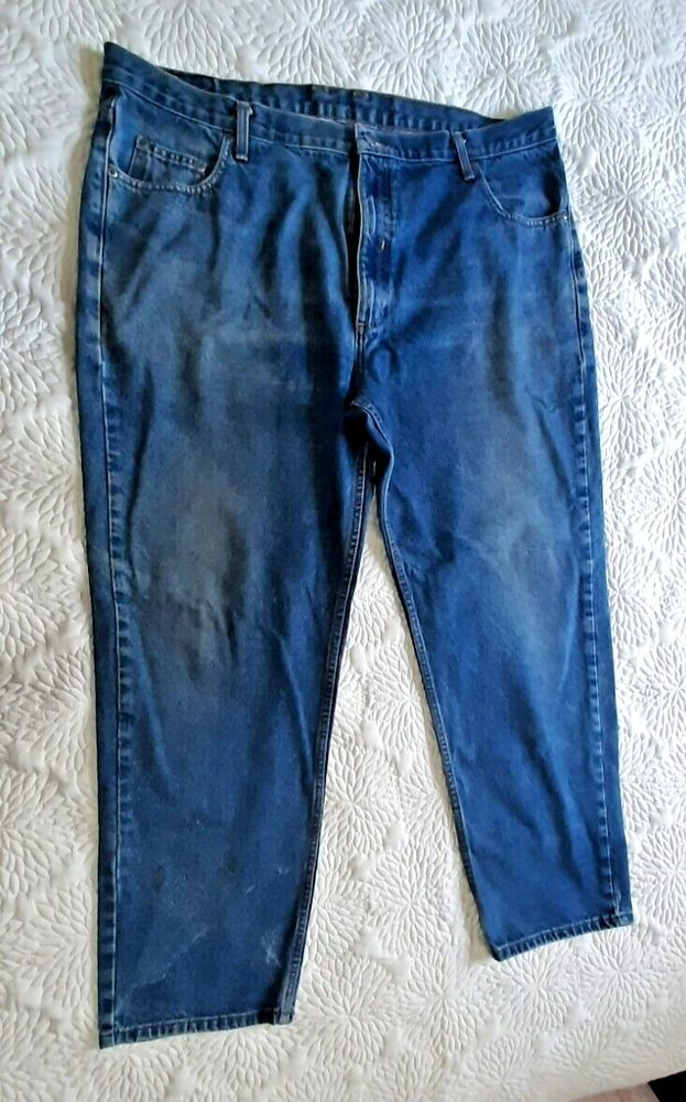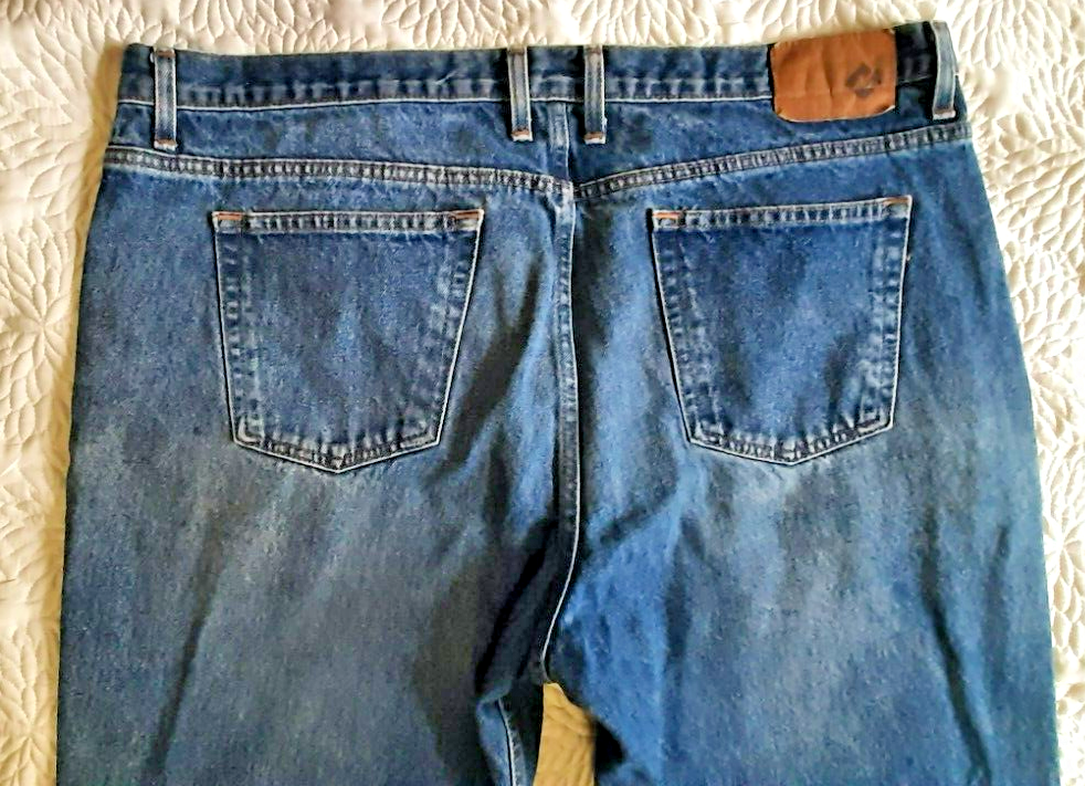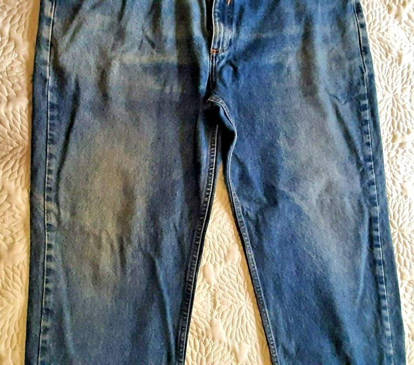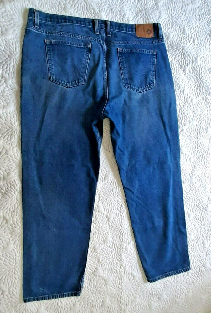 Offering one pair of preowned mens 42x30 heavy weight Members Mark jeans. There is some wear on the front thighs, but these have alot of wear left. They are washed clean. Rise measures 13". Comes from a smoke free home.