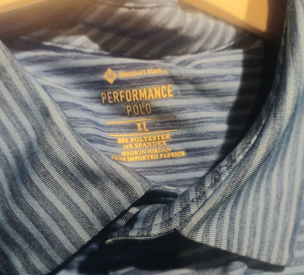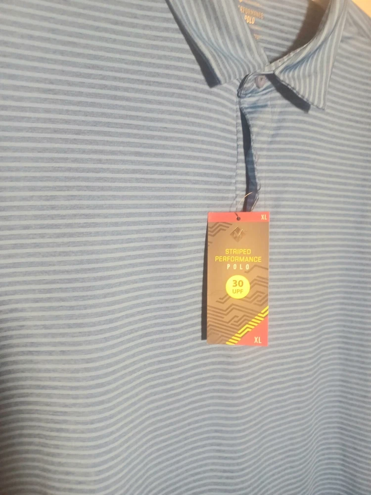 Member’s Mark Man Blue Striped Performance 30USF Golf Shirt, US Size XL. New with tags!