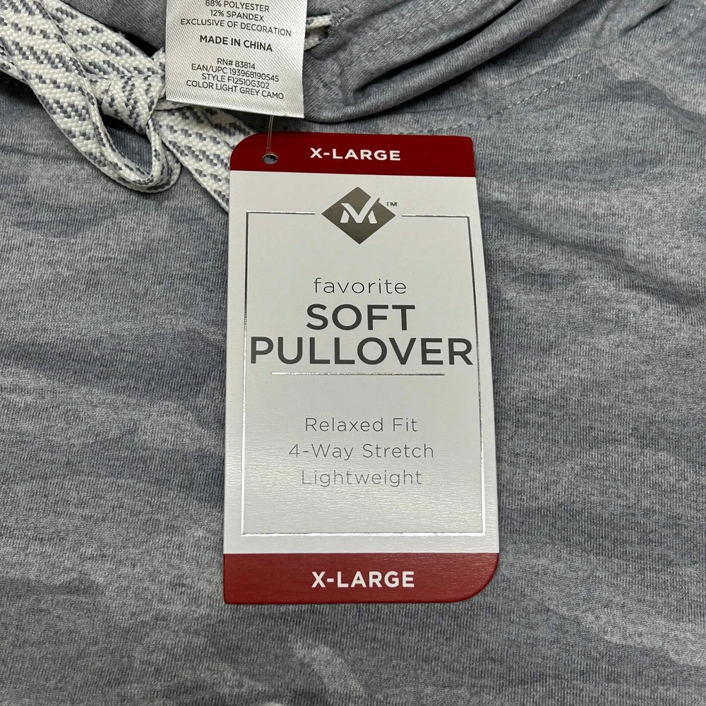 This pullover is incredibly soft and comfortable—perfect for lounging or running errands. The light grey camo design is stylish without being too bold, and the X-large fits just right. Great quality for the price, definitely a new favorite!