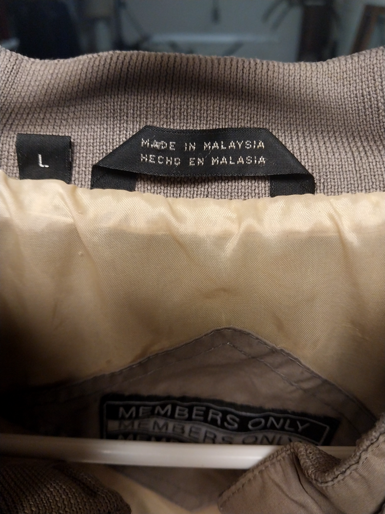 Type: Jacket Lining Material: Nylon Department: Men Size Type: Regular Brand: Members Only Style: Bomber Jacket Size: L Color: Beige Outer Shell Material: Cotton