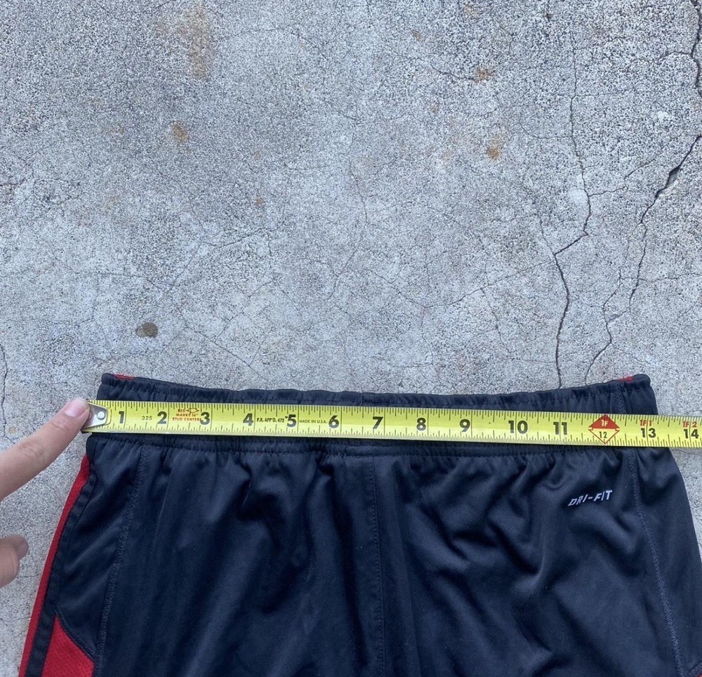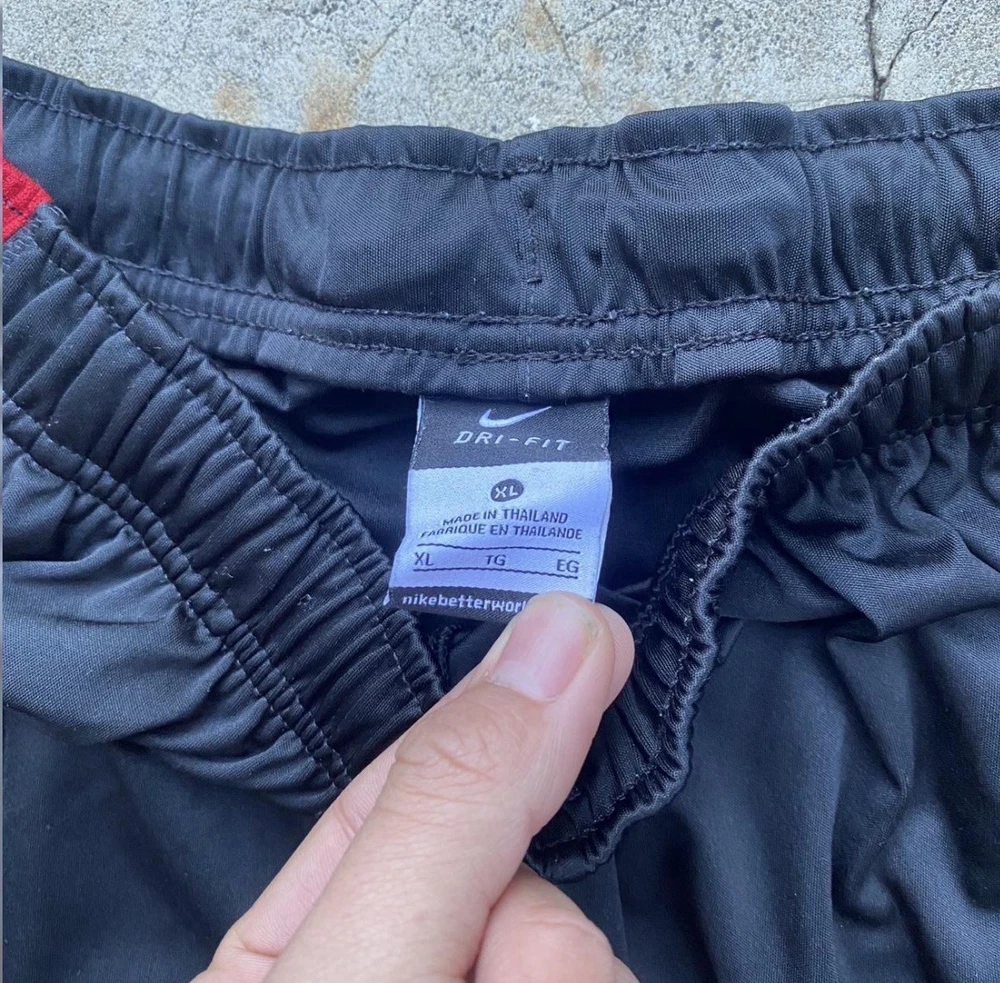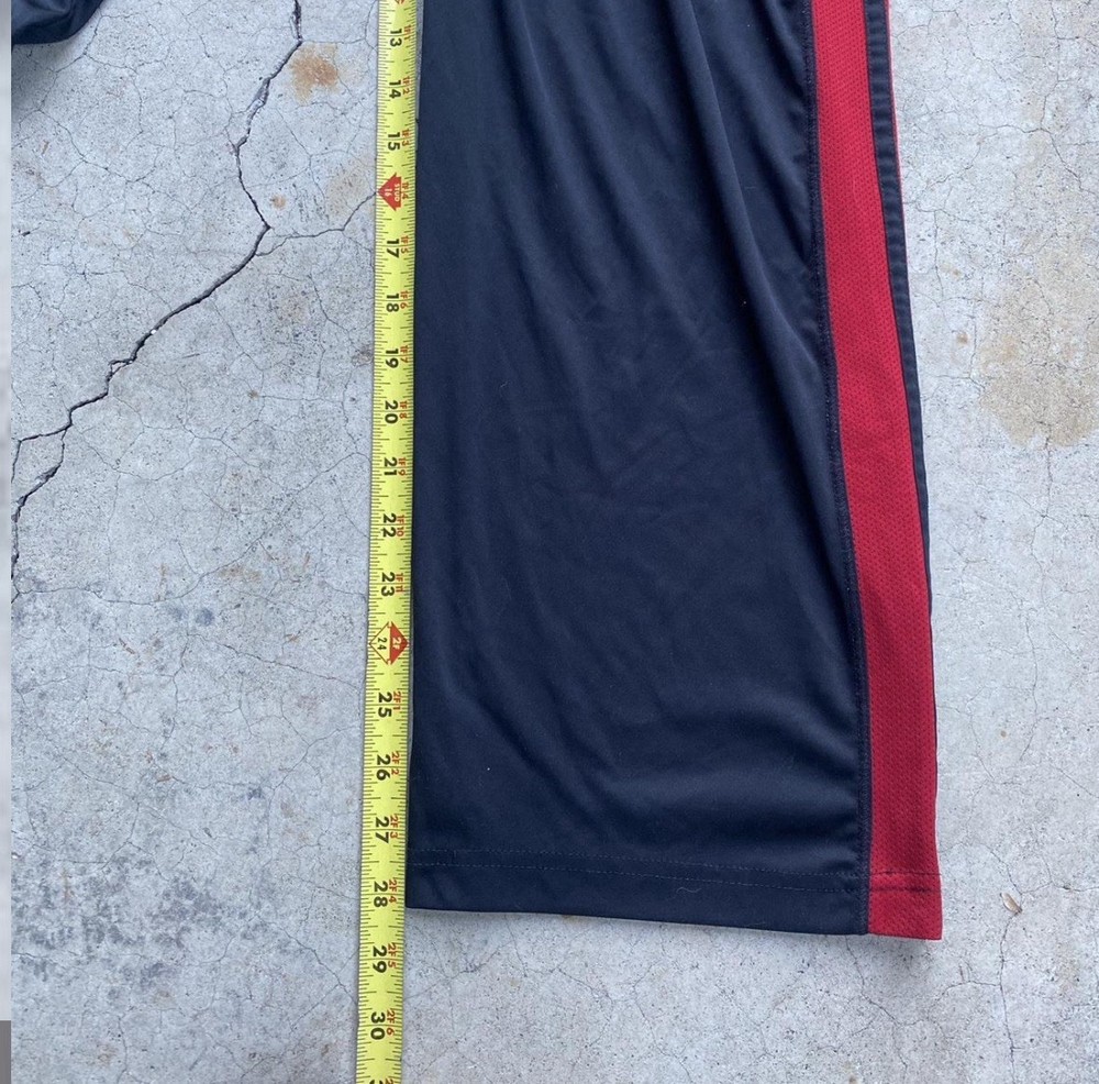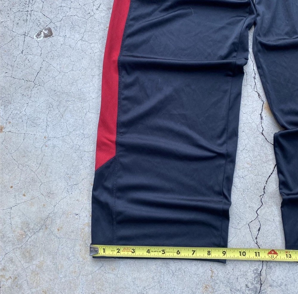 Black Nike tracksuit pants with a red stripe. Between small and medium size.