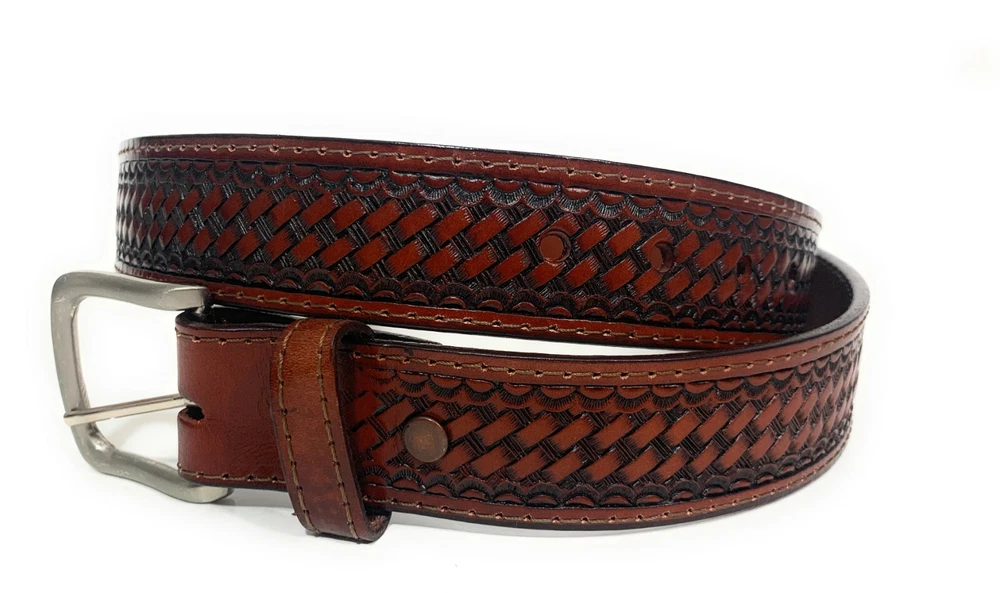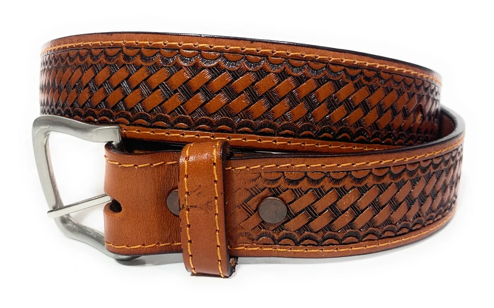 Size Type: Regular Brand: NELIDA'S SOUTHERN IMPORTS Type: Belt Features: Buckle Theme: Western Department: Men Occasion: Casual Style: Work Belt Belt Width: 1 1/2 inches Pattern: basket wave Material: Leather Vintage: No Country/Region of Manufacture: Mexico