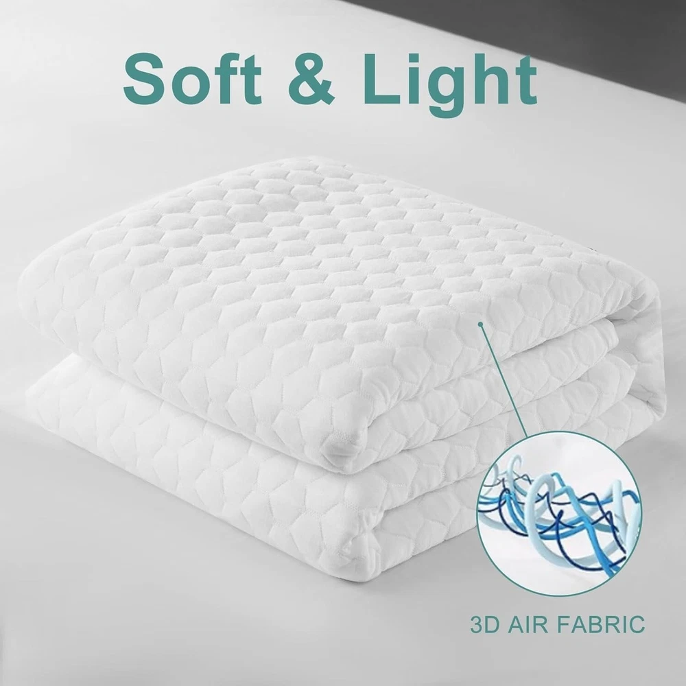 About this item 100% WATERPROOF: Standard 100 by OEKO-TEX certified, there is no need of concern for harmful chemicals or horrible odor. Back of MERITLIFE Queen mattress protector cover is made of top TPU, an invisible waterproof barrier to protect your expensive mattress. Our Queen size mattress cover effectively repels dirt and all liquids, including accidental spills, bodily fluids like sweat or urine, thus makes a clean, safe and healthy sleeping environment. COOLING & BREATHABLE: Our mattress cover tried to be the most breathable and softest fabric with moisture-wicking function. MERITLIFE Cooling Mattress Protector is relatively more breathable, softer than cotton terry/ pure polyester/common rayon mattress cover. SLEEP IN SILENCE: The filling of MERITLIFE Waterproof Mattress Protector is 3D Air Fabric with ultra-fine ventilation holes, which only allows air flow, but quickly locks in invasive moisture and accelerates the moisture evaporation. There won’t be any crinkling or plastic sound when you move. You and your family will enjoy a fresh and silent sleeping environment! 18 INCH POCKET FITS PERFECTLY: Adopting Fitted-sheet Style, all our mattress pad protectors fit 8"-21" thick mattresses and all types of mattress including memory foam, latex or spring mattresses. The highly elastic skirt is made of mesh fabric and has excellent ductility to 100% fit the mattress, without any moving. You will feel the mattress as quiet and comfy as before the cover is applied. If you are not satisfied FOR ANY REASON, Pls contact our Customer Support and we will do everything to make you satisfied.We suggest you buy 2 pieces or more, so you can change one while washing the other. WASHING TIPS: Machine wash cold separately on GENTLE/DELICATE cycle.Tumble dry on low. Do not bleach. Do not dry clean.