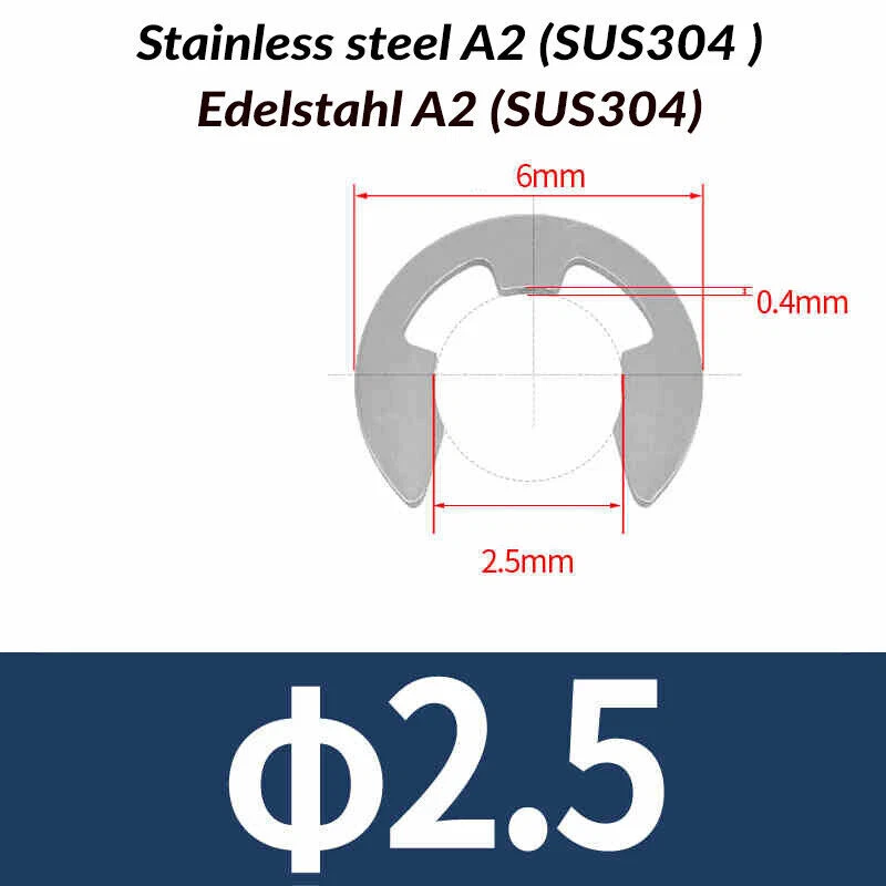 Material: A2 Stainless steel (SUS304) A4 Stainless Steel (SUS316) Size: 1.5 mm - 15 mm Standard: DIN 6799 (GB /T 896)